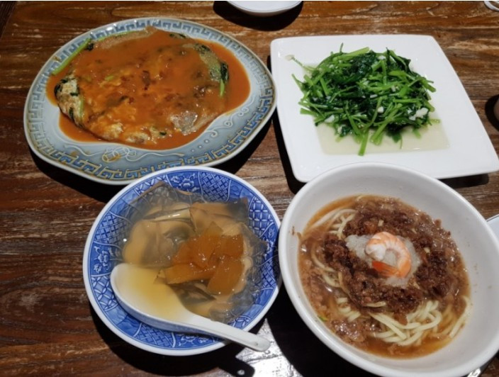 단자이미엔과 콩신차이(모닝글로리), 대만 야시장에서 쉽게 볼 수 있는 굴전인 어아지엔, 그리고 아리산 야생 아이위(爱玉)라는 디저트를 주문했다. 爱玉는 대만 원주민들이 주로 먹는 열매라는데 직접 보거나 먹어본 적이 없어서 주문해 보았다. 단자이미엔의 소스는 우리나라의 된장 맛과 유사하다. 딸아이도 처음 먹는 음식인데도 모두 입맛에 맞다고 그릇을 싹싹 비웠다. 된장, 굴 모두 익숙한 재료, 익숙한 맛이어서인 것 같다. 총 388위엔(한화로 약 16,000원)이다. 푸짐하고 맛있고 저렴해서 더 행복한 식사였다.