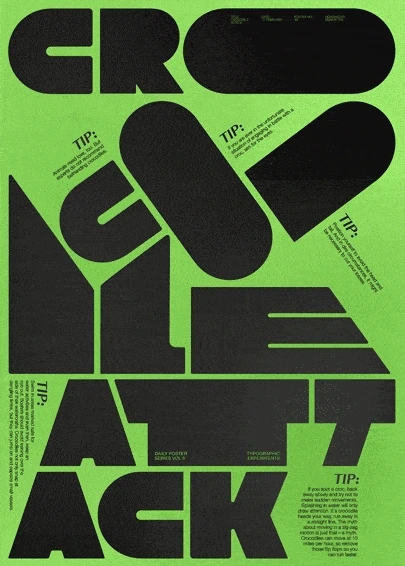 하지 말라는 것을 하거나 정해진 규칙을 어기는 건 재밌습니다. 물론 법을 어기지 않고 남에게 피해를 주지 않는 선에서 말이죠. ‘규칙을 어긴 타이포그래피’ 라니.. 제목부터 흥미롭습니다. 의도적인 질서 파괴, 전혀 고려하지 않은 판독성, 당연히 정렬 따위는 안중에도 없습니다. 심지어 단어의 순서를 섞기도 해서 어떤 내용인지 알아보기조차 힘든 경우도 있는데요. ‘문자’의 개념보다는 그래픽의 개념이 더 가깝게 느껴집니다.