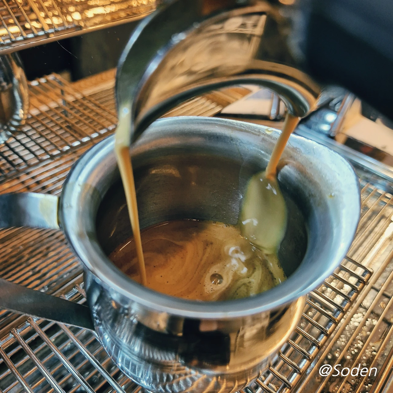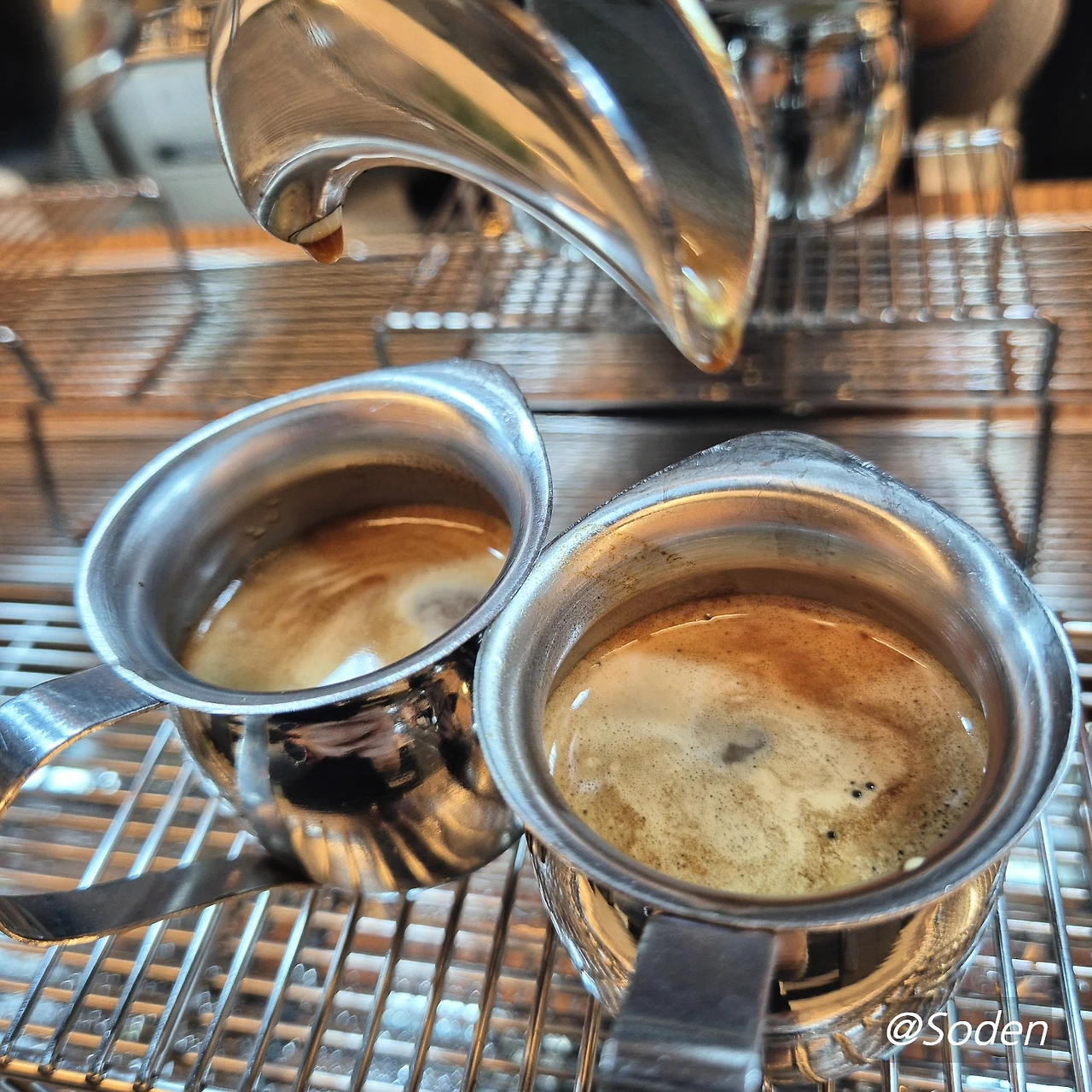 2샷 포터필터를 이용하여 1샷씩 나누어 추출하는 사진