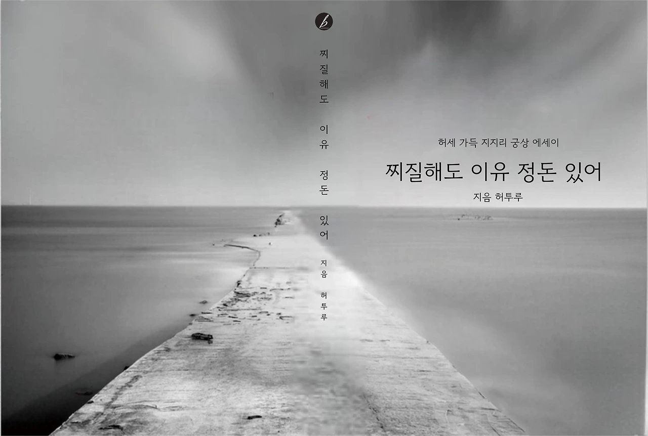 이건 친구가 제안한 디자인이다. 뭔가 망망한 바다에 하나의 길. 우울함과 우울함 너머 다른 무언가 있을 거란 설렘과 기대를 동시에 품은 디자인이라 한다. 하지만 사진에 대한 저작권은 잘 모르겠다. 나는 좀 더 폰트를 바꾸고 글자 색도 하얀색으로 바꾸면 심플해지지 않을까. 어딘가 무난하고 심심하고 상투적으로 변할 우려가 깊다. 조금 더 고민이 필요해 보이지만, 점 하나로 언제든 성격이 달라질 가능성이 있는 표지 디자인.