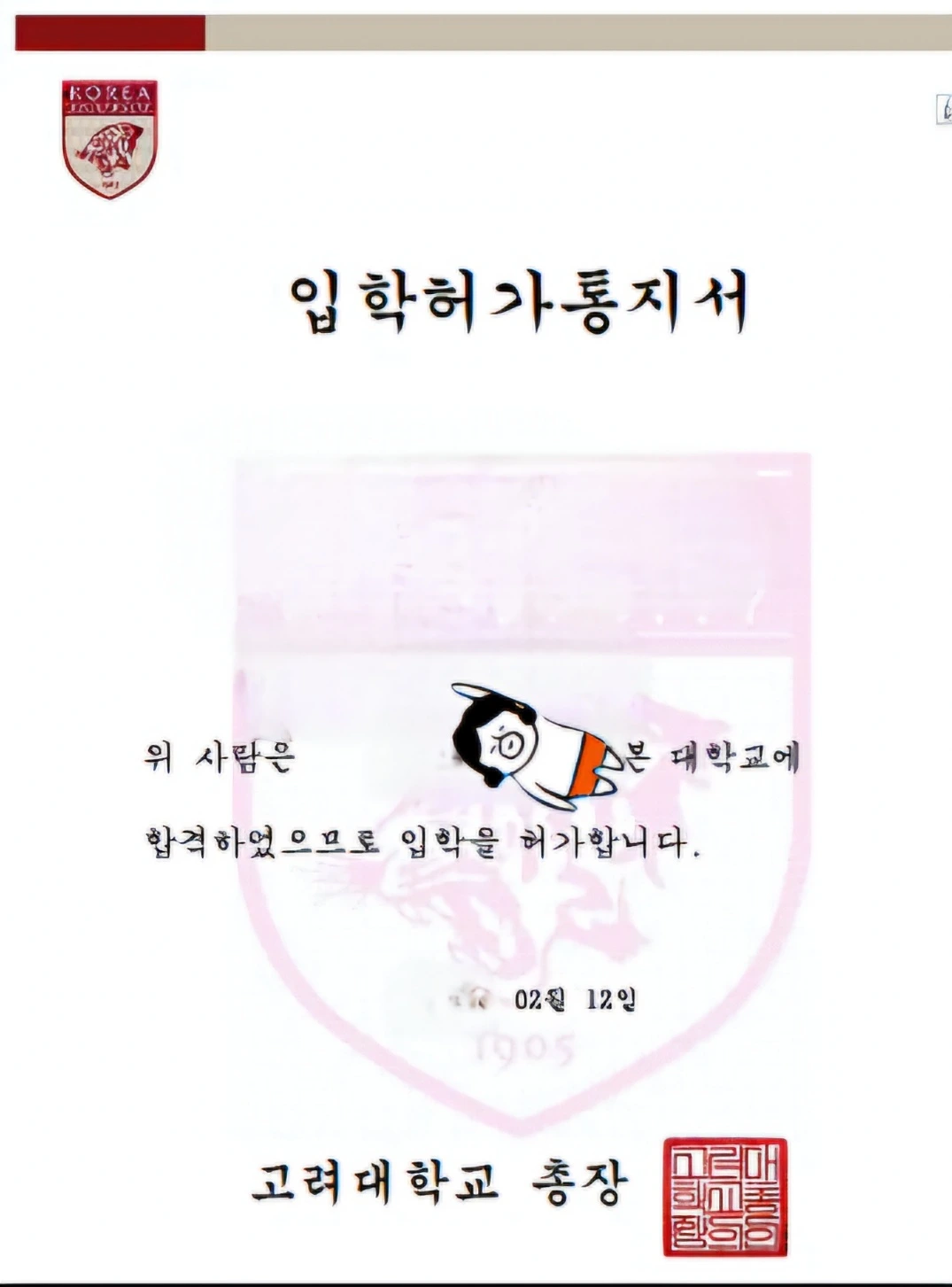 고개를 돌리자 새하얀 종이가 눈에 띈다. 새빨간 호랑이 마크가 멋들어지게 새겨진 그 종이에는 “입학허가 통지서”라고 적혀있다. 기나긴 인고의 시간 끝에 두 손을 번쩍 들고 환호하게 했던 그 종이. 하도 많이 만져서 손때가 번질번질한 그 종이가 갑자기 한없이 낯설어진다. 저 종이에 새겨진 이름이 다른 사람의 이름처럼 느껴진다. 갑자기 믿기지가 않아서 그 종이를 다시 집어 들곤 한 번, 두 번, 다섯 번, 열 번. 계속해서 다시 읽어본다. 거기에 적혀있는 이름이 내 이름임은 틀림이 없다. 그때 날카로운 자동차 경적 소리가 울린다. “빵! 빵!” 번쩍번쩍한 신식 자동차가 눈앞에 모습을 드러낸다.