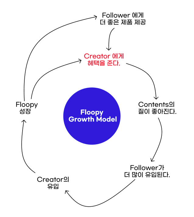내가 만든 성장 모델이다. 인생이든 사업이든 성장 cycle을 만드는 것이 굉장히 중요하다고 생각한다. 결국 비슷한 일을 반복해서 하게 될텐데 정체되어 있지 않고 개인이든, 회사든 성장하려면 우리의 선순환 모델은 무엇일지 깊게 고민할 필요가 있다. 제프 베조스 선생님이 냅킨에 그린 성장 모델을 보면서 우리 회사의 성장 모델은 무엇 일지 고민한 후에 위와 같은 모델을 만들었다. 여기서 출발점은 Creator에게 혜택을 주는 것이다. 모든 측면에서 이들에게 가치를 제공하면 위의 톱니바퀴는 잘 굴러갈 것이라 예상한다. 이들에게 가치를 주는 것을 가장 최 우선 과제로 보고 있다.