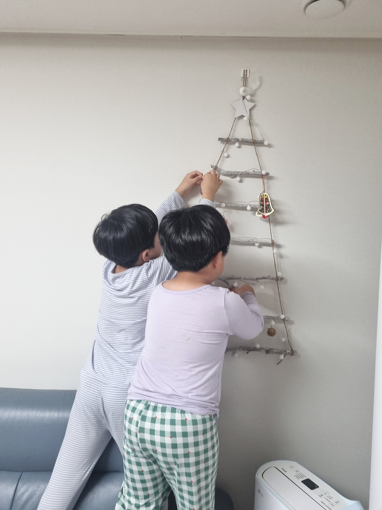 올해는 트리 꾸미기를 조금 더 아이들에게 맡겨봤다.