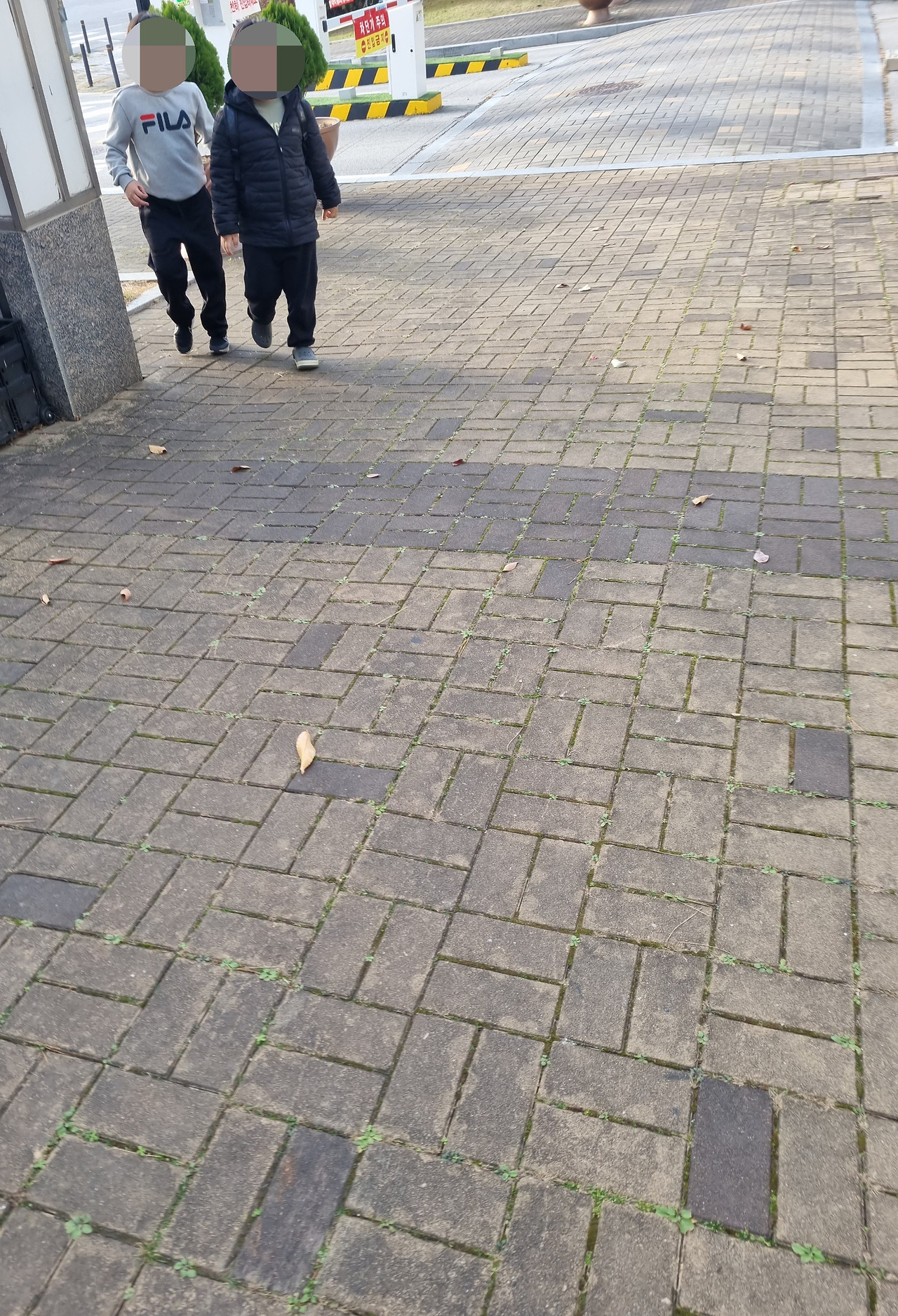 이러다 늦을지도 모르겠다는 생각이 들자 1학년인 아들에게 아파트 후문이 어디인지 알고 있냐고 물어봤다. 후문은 동생이 버스에서 내리는 곳이다.
