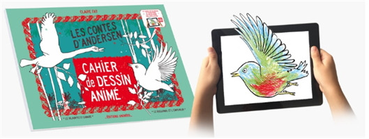 프랑스 스타트업인 '에디씨옹 아니메(Editions Animees)'는 컬러링북 형태인 '블링크북(Blink book)'으로 돌풍을 일으켰다. 블링크북은 안데르센 동화나 라퐁텐 우화와 같은 다양한 명작들을 밑그림으로만 제공하고, 아이들이 밑그림 위에 자유스럽게 색칠을 한다. 그리고 태블릿으로 사진을 찍기만 하면 자신이 색칠한 그림들이 생동감 있게 살아 움직이는 재미있는 애니메이션으로 만들어진다. 간단하게 다양한 SNS나 유튜브(YouTube)로 공유도 가능하다.(그림1 참조) 국내에도 책과콩나무에서 '클레르 파이(Claire Fay)'의 작품을 들여와 <색칠하고 사진 찍고 와우!>(2015.12)라는 도서명으로 큰 인기를 얻기도 하였다. 새로운 매체들이 출시되고 대중화되면서, 종이책의 아날로그적 감성을 전자책의 디지털 공간으로 확장시키는 ‘From Paper to Screen’ 사례들은 지속적으로 나타나고 있다.