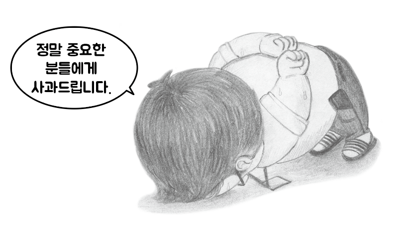 철수는 두려움과 걱정 때문에 눈시울이 붉어지면서 눈물이 한가득 고이더니 결국 닭똥 같은 눈물을 뚝뚝 흘렸다. 철수가 울자 철수 엄마는 뭘 잘했다고 우냐고 소리쳤다. 너무 큰 목소리로 철수를 혼내자 옆에서 듣고 있던 영희가 엄마에게 말했다.