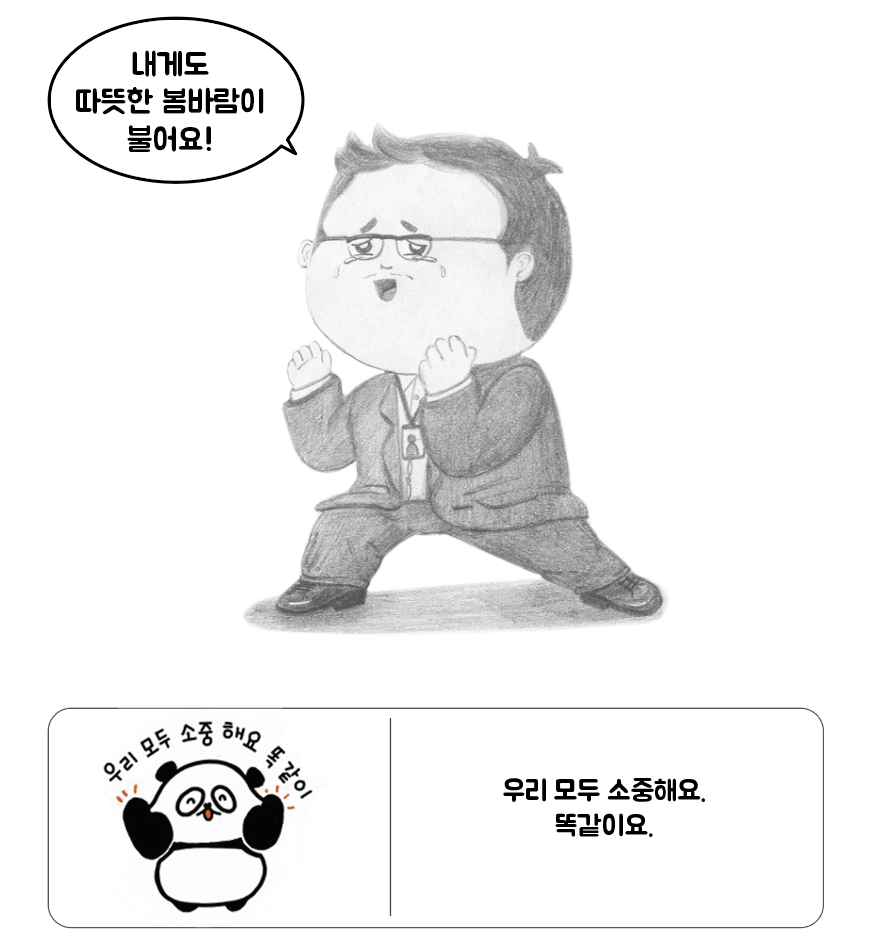 봄바람과 가을 서리는 사람을 가리지 않습니다. 우리 모두 봄바람이 필요할 때가 있고 가을 서리를 맞아야 할 때도 있습니다. 마찬가지로 자신과 타인에게 봄바람이 되어줄 때가 있고 가을 서리가 되어줄 때가 있습니다. 봄바람만 불면 꿀벌들이 일을 하지 않을 테고 가을 서리만 내린다면 꿀벌들은 모두 얼어 죽을 것입니다. 공평한 봄바람과 가을 서리처럼 나와 타인에게 모두 공평한 저울러가 되기를 바랍니다.