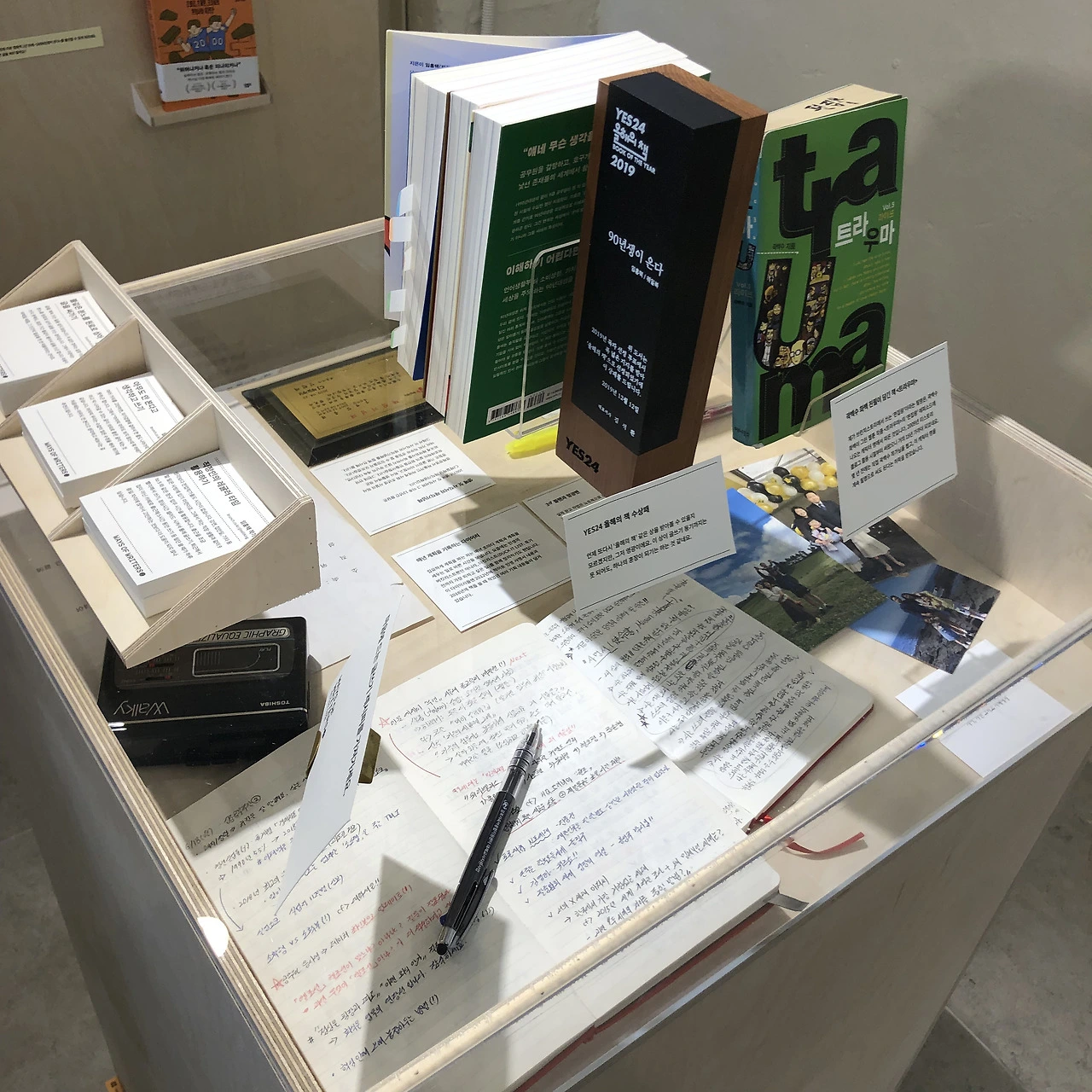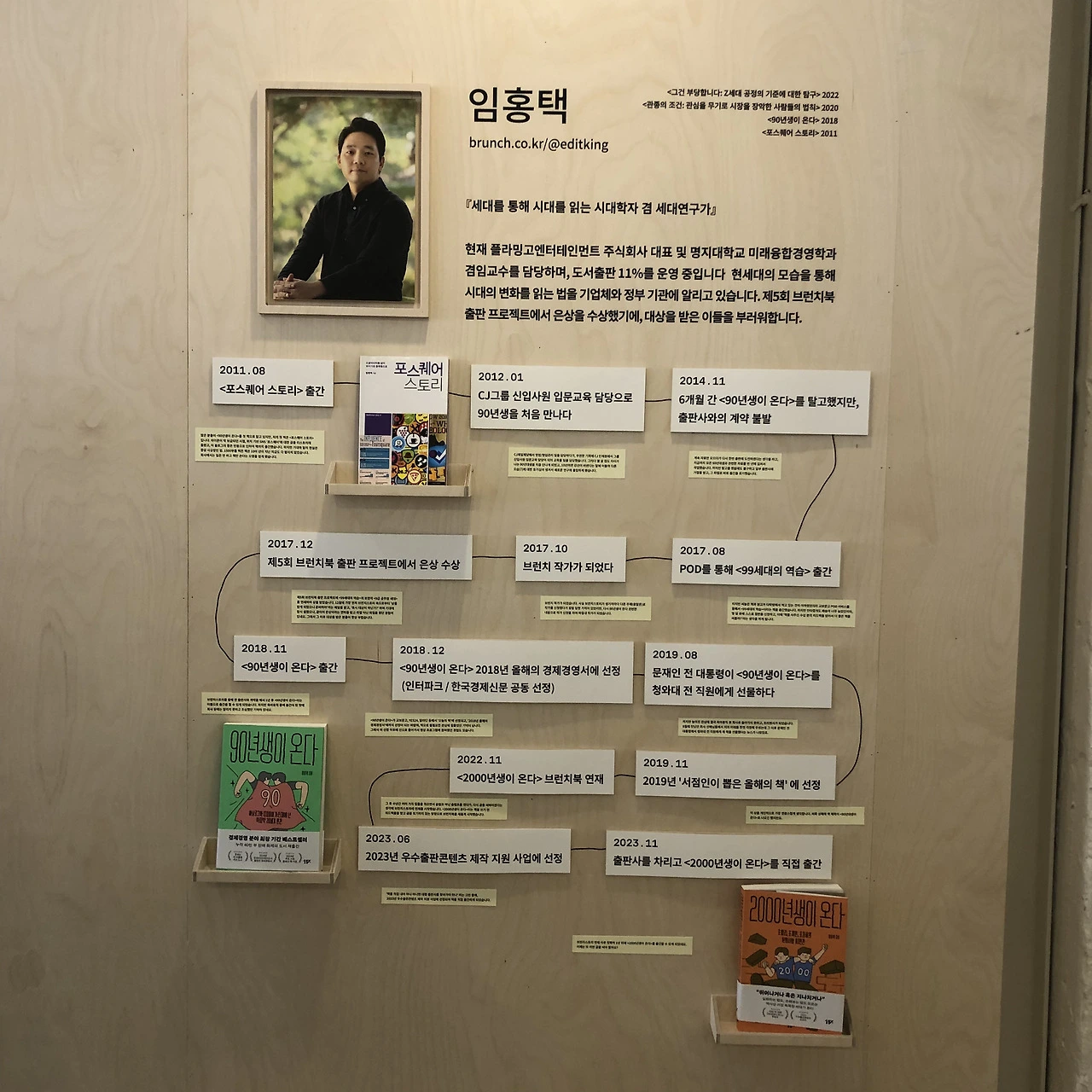 너무나도 유명한 책, <90년생이 온다 : 임홍택 작가>의 작가인생 타임라인과 노트, 애장품들이 함께 전시되어 있었습니다. 노트에는 '나는 인류에 도움을 주는 글을 쓴다.' 내용의 비전선언문이 담겨있어서 놀랐습니다.