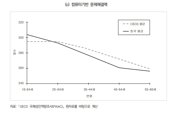 PIAAC 성취도 중 '컴퓨터 기반 문제해결력' (출처: 위와 상동)