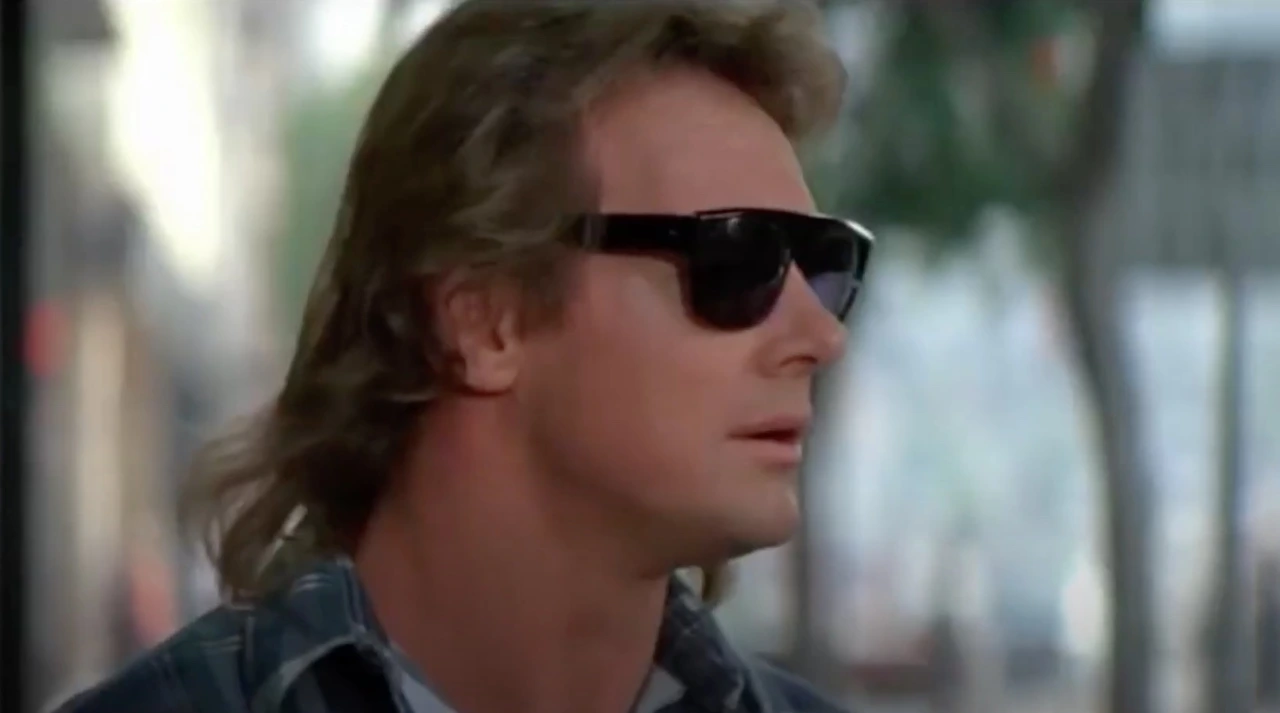 <They Live>(1988)의 장면. 주인공이 이데올로기를 드러내는 선글라스를 쓴다.
