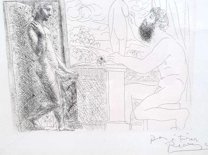 <포즈를 취한 마리 테레즈를 모티브로 작업하는 조각가> 1933 파리서 제작, 동판에 에칭