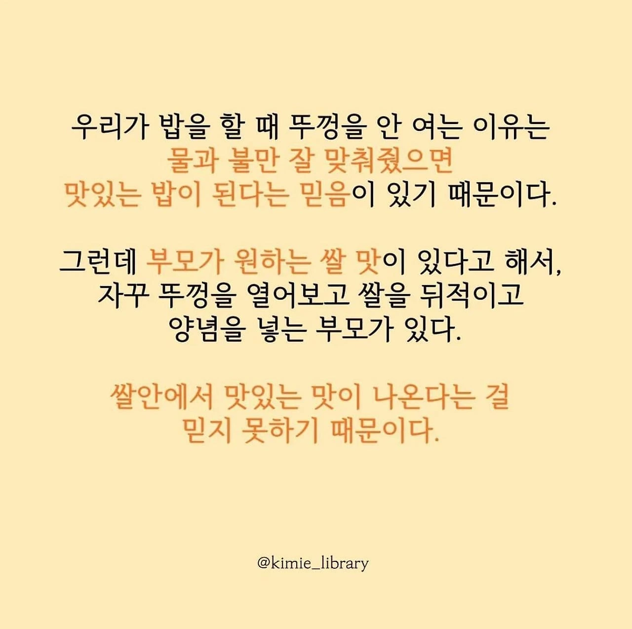 쌀 안에서 맛있는 맛이 나온 다는 것을…. 믿어주어야 한다.