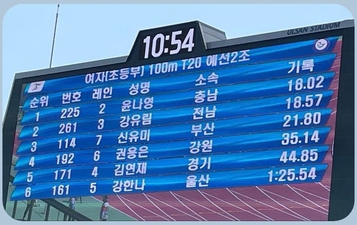 1분 25초 54 한나의 기록이다. 실격이 아닌 공식 기록이다.