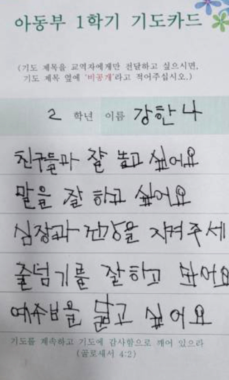 작년 초등학교 1학년인 한나는 스승의 날에 찾아왔다.