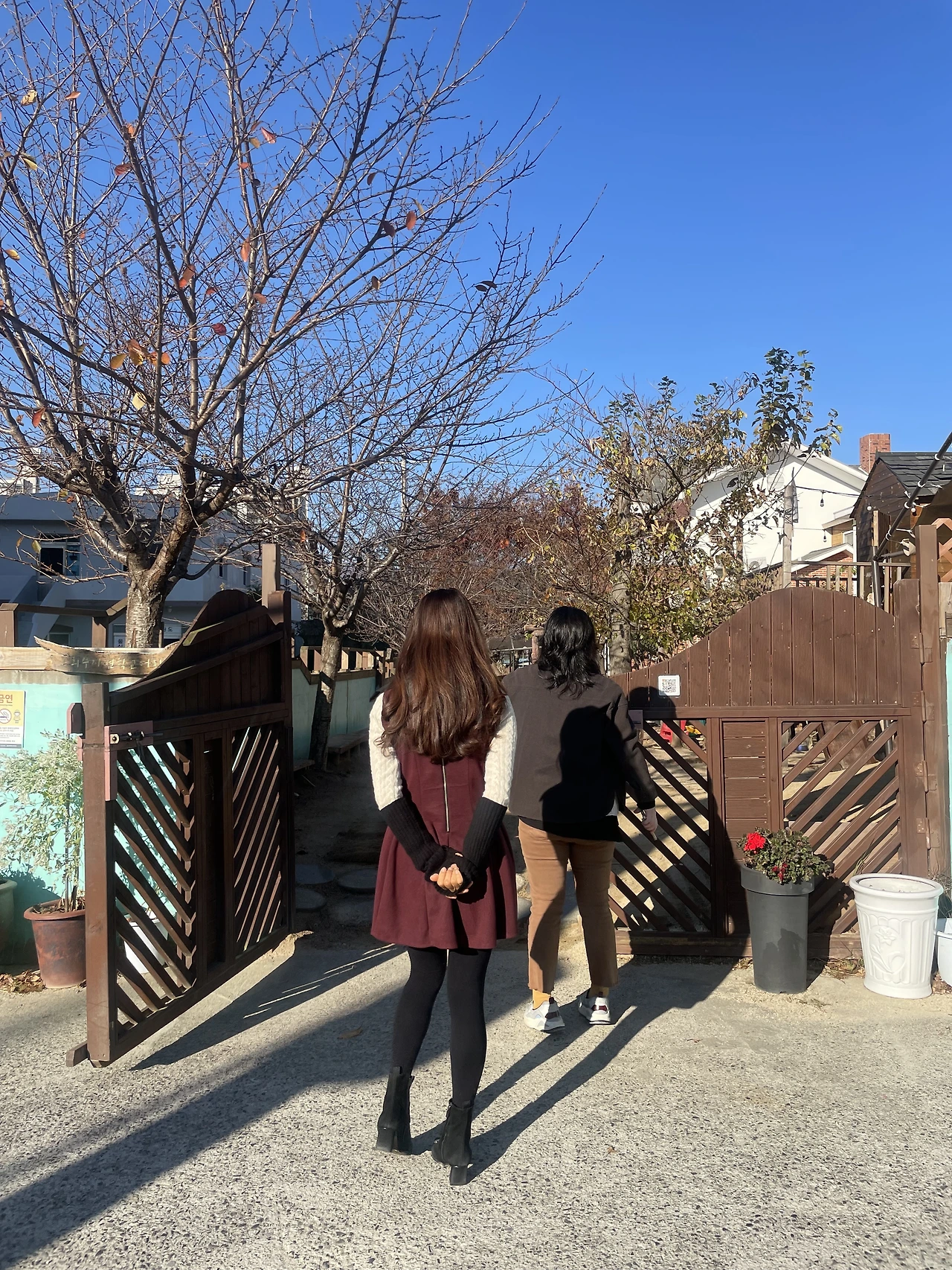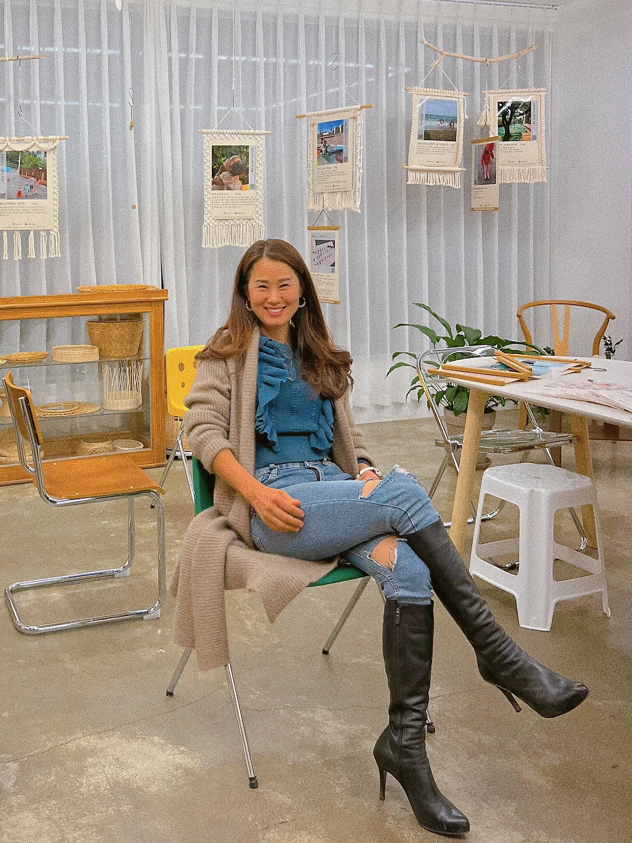 허리 잘록한 44 사이즈 원피스와 새것과 다름없는 굽 높은 가죽 부츠를 나눔 받았다.