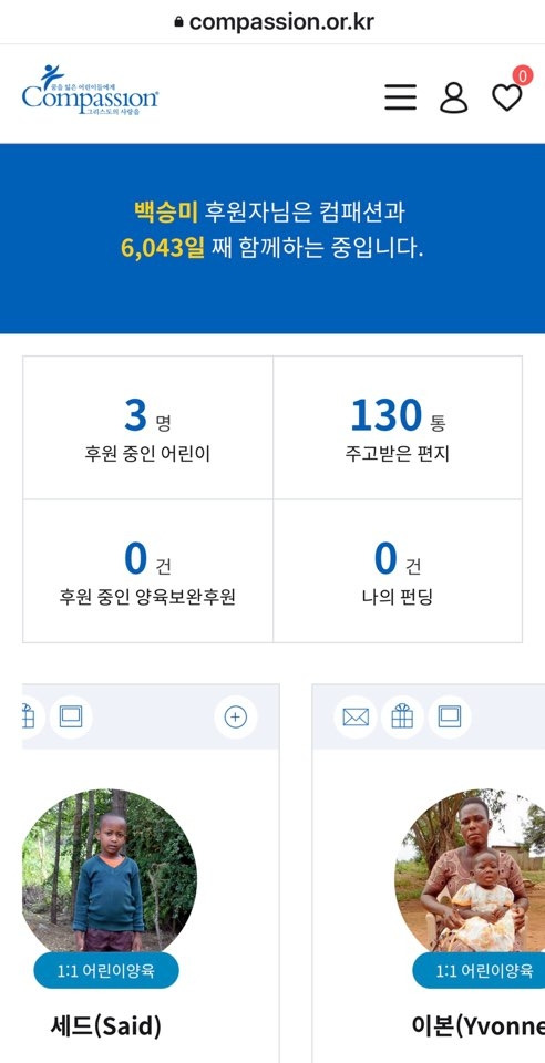 나는 평소에 후원하던 '한국 컴패션' 사이트를 열었다. 400일이 넘도록 후원을 기다리는 아이들 리스트를 쭉 ~ 보여주면서 솔이는 누구에게 빵과 학용품을 보내주고 싶은지 물었다. 솔이가 선택한 아이는 이본이다.