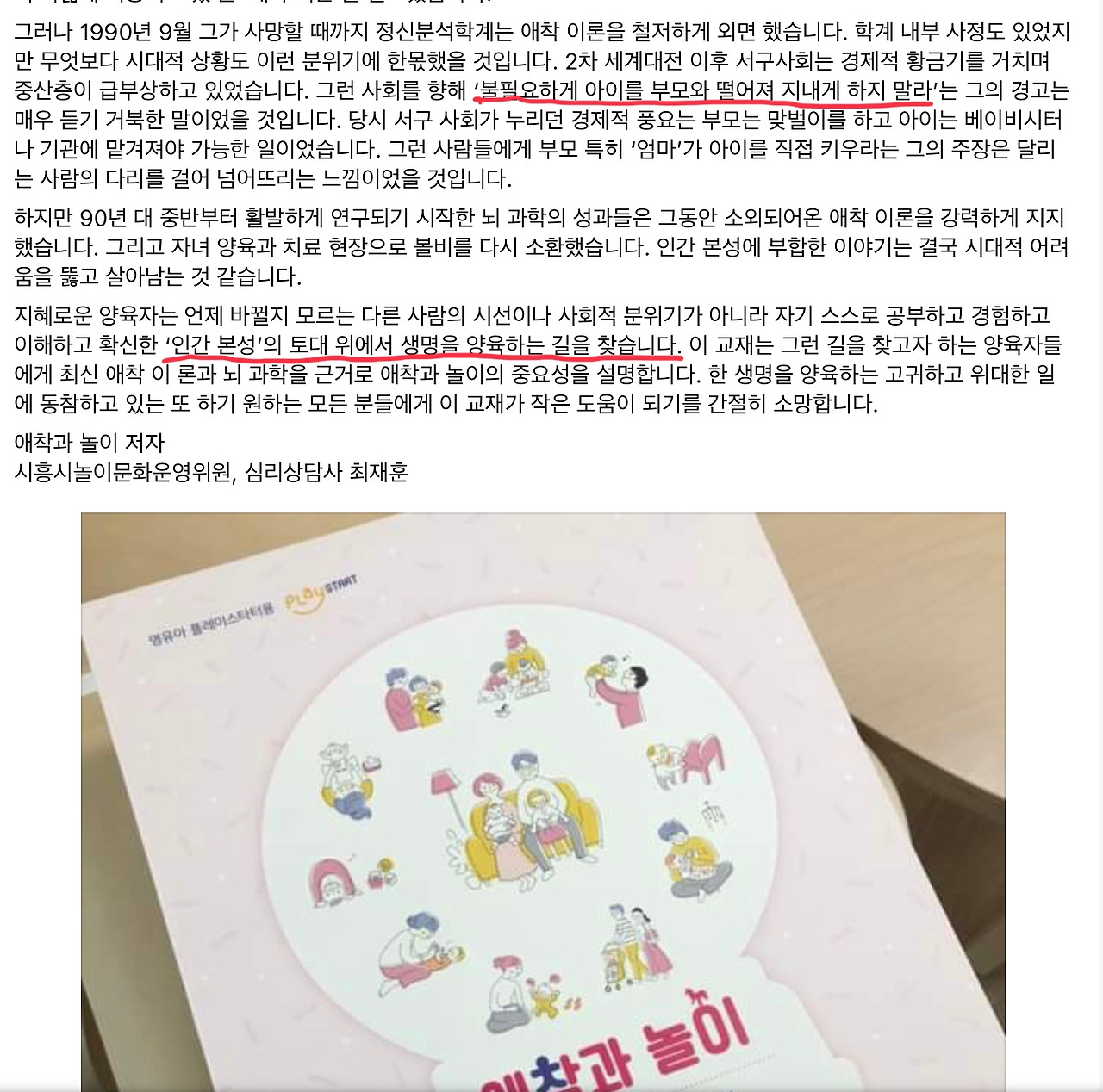 - 최재훈 선생님이 보내주신 애착과 놀이 설명서 -