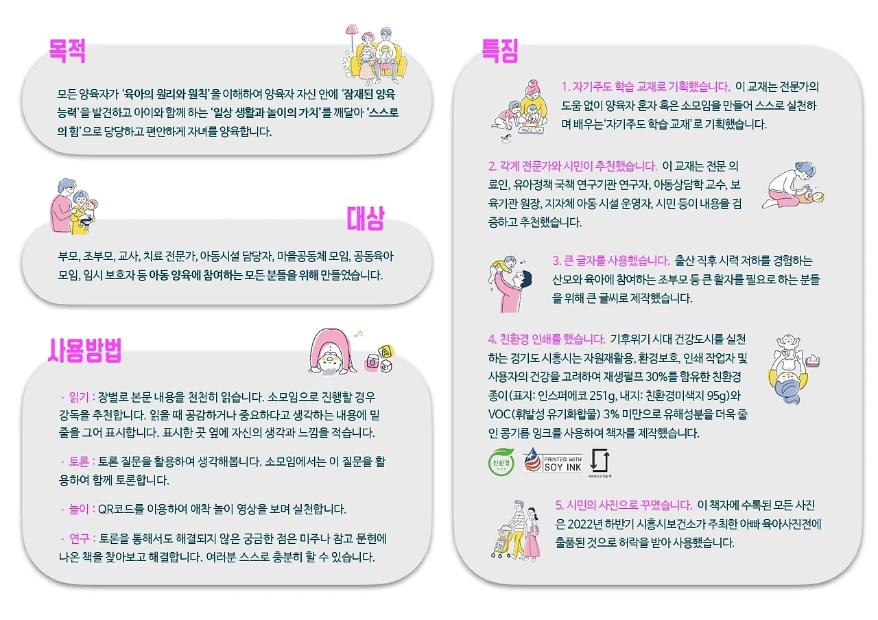 이 책을 관공서인 시흥시에서 발간한 것을 보면 시흥시가 영유아와 놀이 그리고 부모에 대해 얼마나 진심인지 보여서 부러울 정도다.