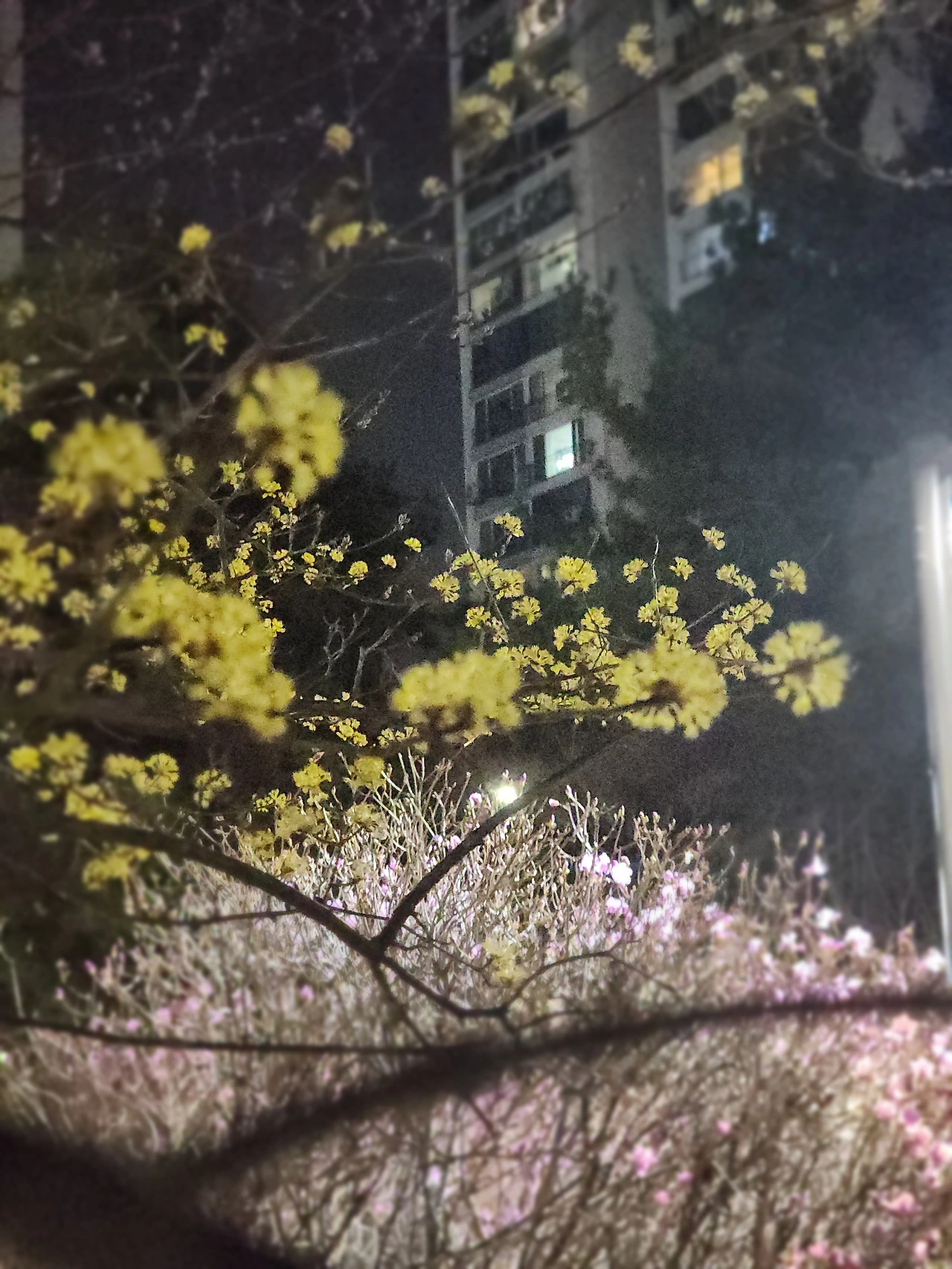 차가운 밤공기 사이를 가로등 불빛이 날카롭게 가른다.