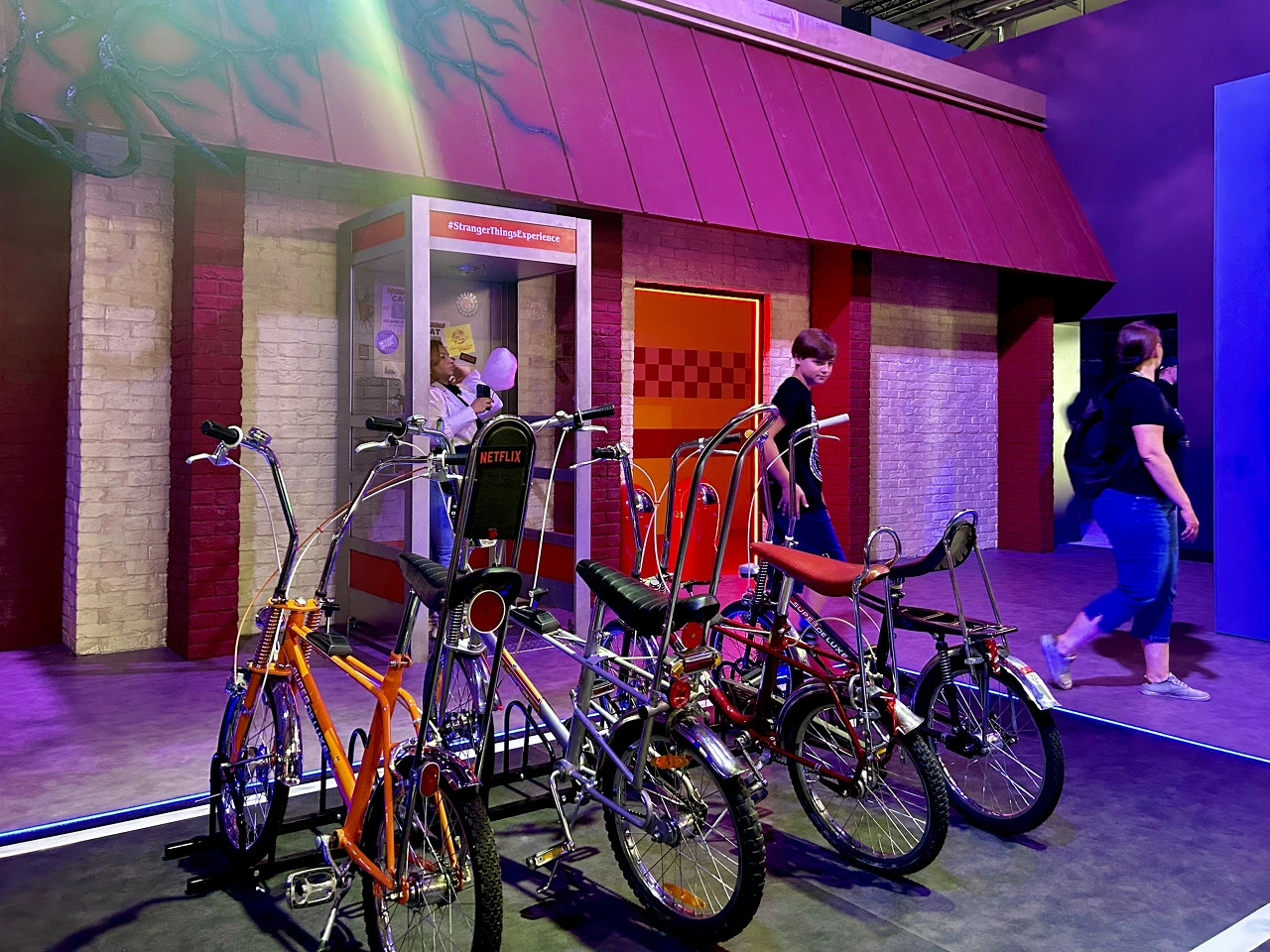 기묘한 이야기(Stranger Things) 존에는 '서퍼보이 피자 가게'를 그대로 옮겨 놓고, 드라마 주인공이 항상 타고 다니는 자전거를 전시해서 반가움을 자아냈다. 기묘한 이야기 배경의 스티커 사진을 찍고 피자도 먹으며 '콘텐츠의 추억'을 되짚어 보는 방문객들은 기대할 수밖에 없다.
