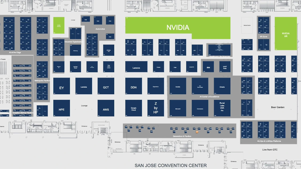 2009년에 시작된 GTC는 15년이 지나서야 역대급으로 가장 많은 주목을 받았다. 전시 참가기업은 300개가 넘었고, 세션은 900개 이상 진행되었다. 실제 전시장에 갔을 때, 전 세계 IT기업들이 엔비디아 부스를 중심으로 줄을 서있는 것 같았다.