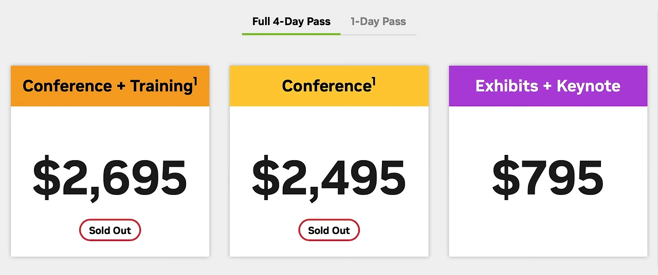 우리 회사는 삼성의 GTC 프로젝트를 실행했기에 Exhibitor 패스를 받아서 자유로운 출입이 가능했지만 패스를 구입해야 하는 경우, 100만 원이 넘는 고가의 패스 비용을 내야 한다.