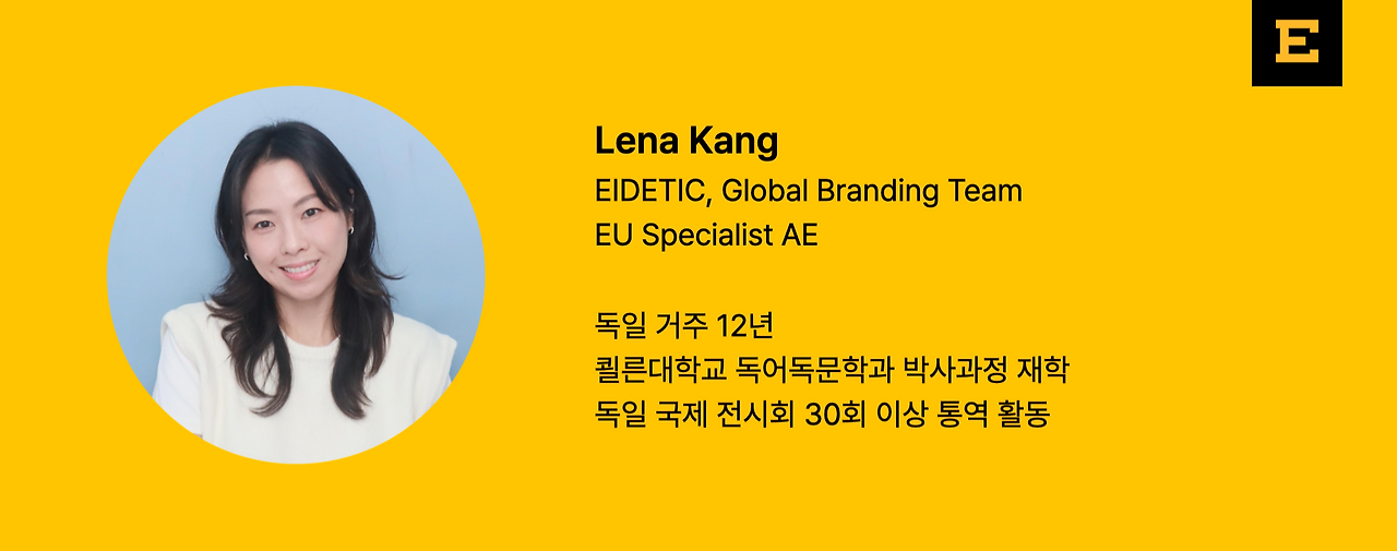 Global Branding의 마케터로 입사한 나는 이제 ‘Lena’라는 새로운 이름으로 활동한다. 그리고 아이데틱이 독일 전시회에 참가할 때마다 현지에서 전반적인 지원을 맡아, 회사가 목표한 바를 최상의 환경에서 달성할 수 있도록 실무를 꼼꼼히 챙기는 역할을 한다. 동시에 독일 전시회 시장의 최신 정보와 동향을 파악해 회사에 전달하는 것도 내 주요 업무 중 하나다. 구체적으로는 독일 전시회 일정과 트렌드를 분석하고, 관련 업계 소식을 수집하며, 회사가 시장의 흐름을 명확히 이해할 수 있도록 돕는다. 이에 나는 독일에 있는 아이데틱의 한 식구로서, 그리고 종군기자로서, 독일 전시회 산업의 현재를 전달하고자 한다. 현지에서 보고 듣고 경험한 것들을 바탕으로 앞으로 독일 전시회 시장에 대한 깊이 있는 통찰을 담아 진솔한 이야기를 써 내려갈 계획이다.