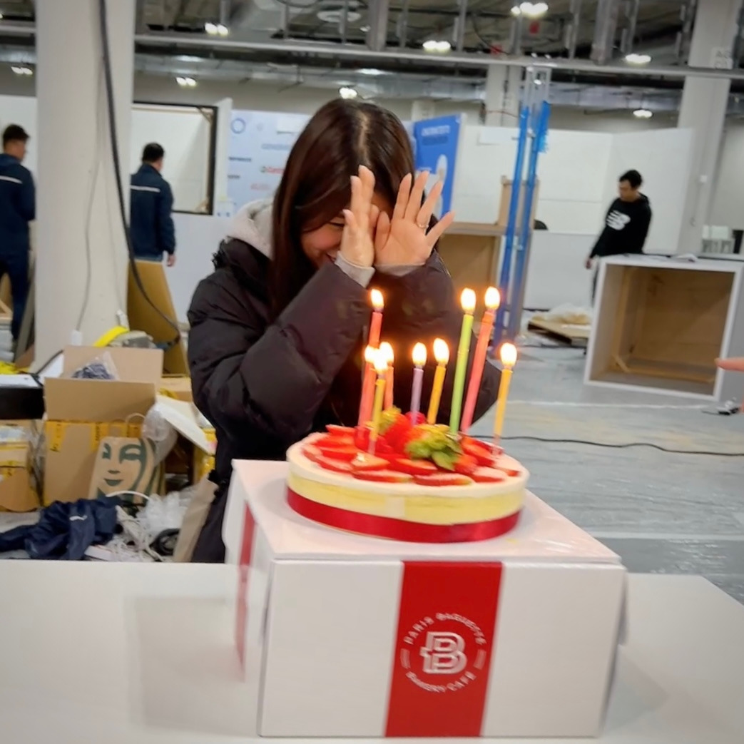 철공과 목재가 쌓인 삭막한 전시장에서 생일축하 노래가 울려 퍼졌다. 어느 날과 다를 바 없는 바쁜 현장 상황이지만 소소하게나마 Kimmi의 생일을 함께 축하할 수 있다는 게 좋았다. 생일초를 불며 그녀가 기뻐하는 모습을 보면서 모두의 마음이 훈훈해지는 특별한 밤이었다.