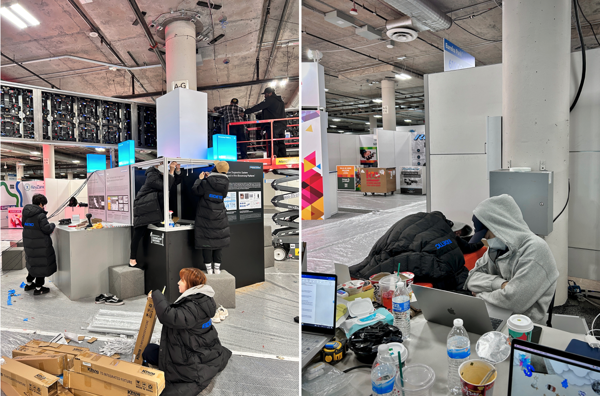 CES 오픈일은 다가오는데 예정대로 진행되지 않는 시공이 우리 발목을 잡았다. 침묵을 유지하시던 대표님은 갑자기 두 팔을 걷고 일어서서, 마감이 지연될 수 있는 문제점들을 하나씩 해결하자고 하였다. 그중에서 그래픽 작업은 유니언이 하는 걸 기다리기엔 시간이 촉박하고 손이 많이 가는 일이었다. 우리는 각자 일을 하다 말고 그래픽 시공에 투입되었다. 유니언의 인건비를 내고, 우리가 노가다를 하는 이 무슨 황당한 시추에이션? 미국 전시에는 인내심과 체력이 필요할 거라는 현지 팀장님의 충고를 격하게 체감하며 새벽까지 작업이 이어졌다. 그래픽뿐만 아니라 조명 설치, 가구 배치, 전선 정리 등 각자 주어진 포지션에 맞게 바쁘게 움직였다. 현장 구석에서 쪽잠 자고 커피를 드링킹 하며, 이번 프로젝트가 문제없이 완료되길 바라는 시그널을 보내면서.