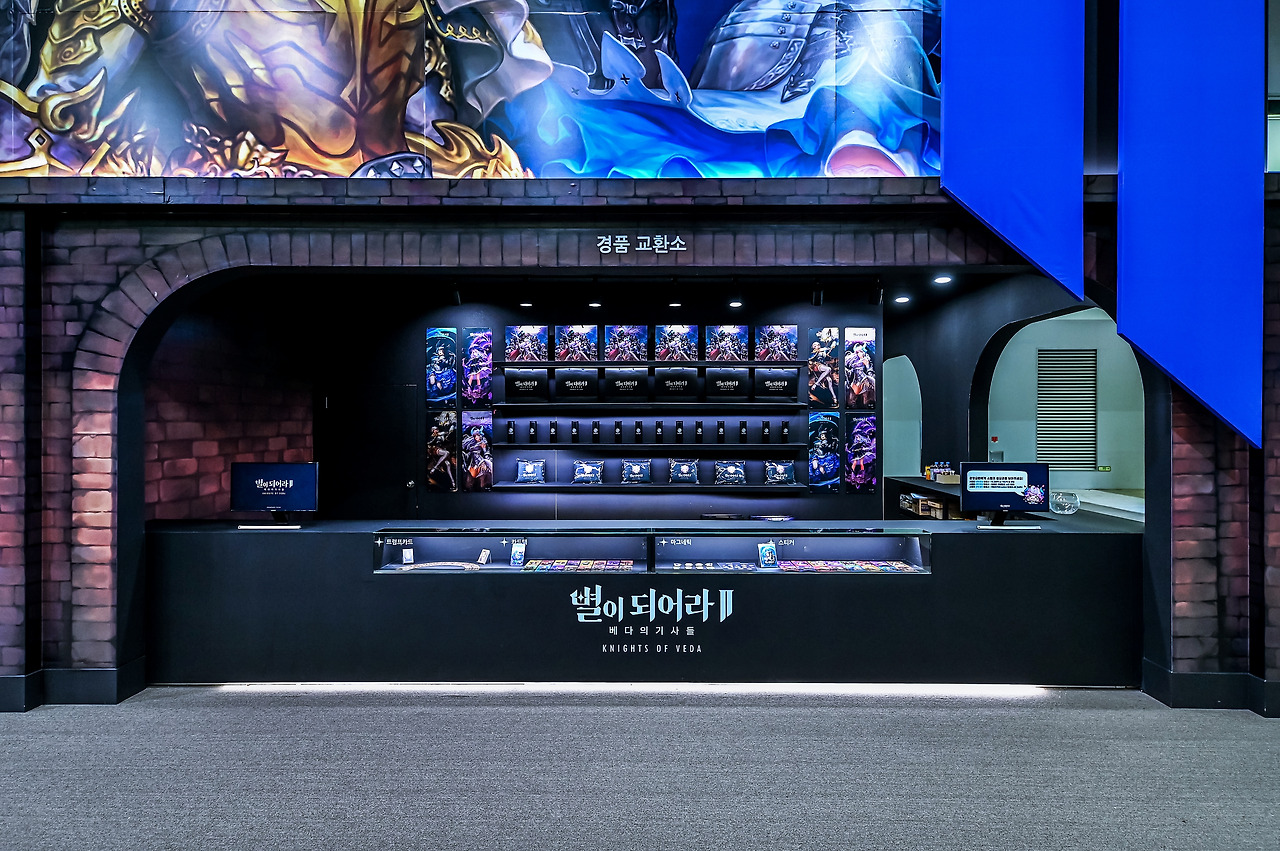 스토리 지향 게임이어서, 캐주얼해 보이지만 어두운 내용을 담고 있다. 우리는 게임이 가지고 있는 세계관을 부스에 녹이기 위해 중세 유럽풍 판타지를 느낄 수 있도록 부스 디자인을 하고, 별되2 캐릭터를 체감할 수 있는 공간들로 기획하였다.