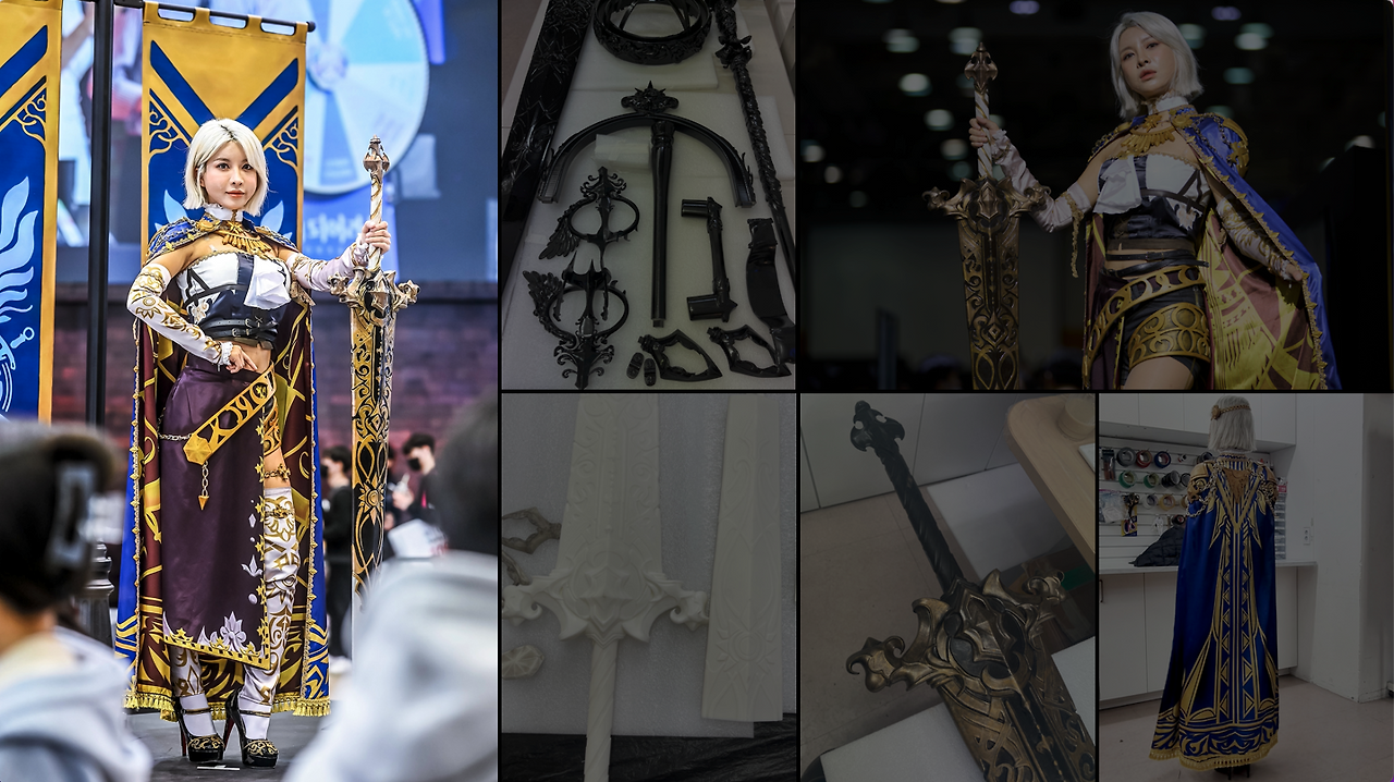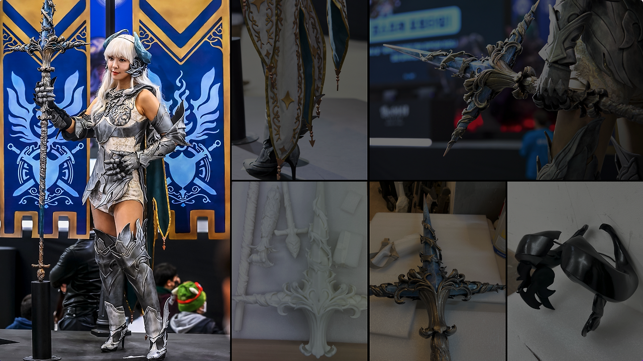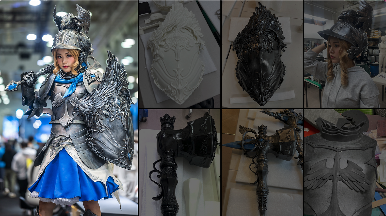 우리는 먼저 캐릭터별 특성을 조사하고, 컨셉 회의를 시작했다. (실제 해당 캐릭터로 게임 플레이를 여러 번 했다.) 세계관이 뚜렷한 게임인 만큼, 캐릭터의 철학을 잘 표현할 수 있는 코스프레 컨셉을 잡았다. 이후 일러스트 시안이 완성되면 원하는 원단을 발견할 때까지 찾아다녔고, 제작 중간 과정을 플린트에 공유하며 개발자들과 함께 디테일을 풀어 나갔다. 이와 동시에 의상과 무기 가용성을 높이기 위해서 '무게'를 고려한 3D 프린팅 작업도 진행하였다. 의상에는 갑옷과 방패, 투구도 있었기에 사실감과 착용감이 마음에 들 때까지 수십 번의 감리가 계속되었다.