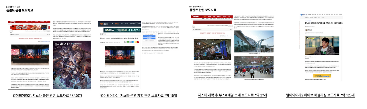 지스타에서 ‘플린트’가 가지고 있는 경쟁력이 집중 조명되면서 ‘하이브’와 해외퍼블리싱 계약 체결까지 성사되었다. 하이브는 지스타를 통해 ‘별되2’ 게임의 완성도와 유저들의 반응을 통해 콘텐츠의 영향력에 대해 확인한 것이다. 하이브는 게임산업의 본격화를 알렸고, 플린트는 자체 개발작 성공에 이어 글로벌 진출까지 확정된 성과를 거두었다.
