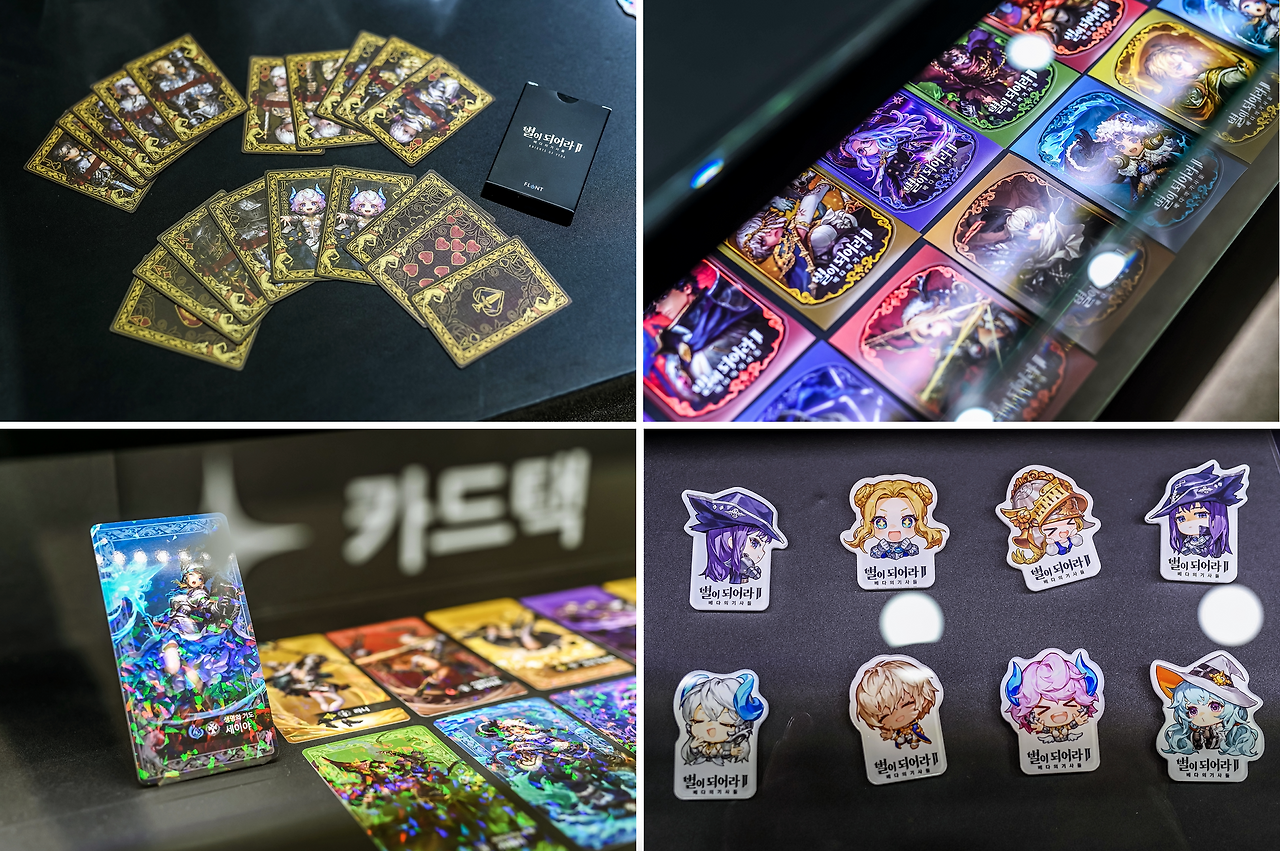 ‘별되2’의 개성과 톤을 담은 굿즈 샘플을 확인한 플린트는 매우 만족하며 눈을 떼지 못했다. 굿즈에 관심 없던 나도 마우스 장패드와 트럼프 카드를 갖고 싶은 마음에 행사 마지막날까지 굿즈가 남는지 확인했다.