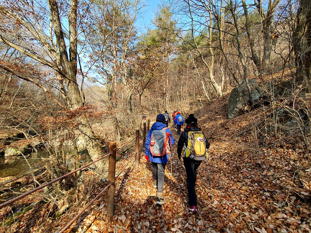 내게 가장 힘들었던 코스는 치악산 곧은치재 구간이었다. 분명 내가 상품을 고를 당시엔 초보자도 가능한 코스라는 표시가 있었고, 치악산이지만 얕은 둘레길 같은 곳을 걷나 보다 생각하곤, 말로만 듣던 치악산에 발 한번 디뎌볼까 하는 지극히 심플한 생각만을 한 채 떠났다가, 하마터면 산 위에 그대로 주저앉아 대성통곡하며 울 뻔했다. 한참 이어지던 오르막 길에선 함께 걷던 분들과 으쌰 으쌰 하며 간식도 나누어 먹으면서 참을 만했다. 문제는 내리막길. 그날 등산화를 신어본 것도 처음이었는데 워낙 내가 못 내려가고 있으니 옆의 친구가 스틱을 한쪽 내주었다. 그걸 처음 써보면서 발을 내딛는데 도무지 어디를 짚어야 할지, 어느 방향으로 가야 할지도 모르고 우왕좌왕, 다리는 이미 힘이 풀려 앞으로 곧 꺾일 것 같은 상태가 되었고, 온몸은 부르르 떨리고 있었다. 어느새 나는 꼴찌로 그 길을 내려오고 있었고, 가이드님의 도움을 받곤 겨우겨우 땅 밑으로 하산. “내가 여길 왜 왔을까? 다시는 이제 이 회사의 상품으로 여행 오지 말아야겠다. 내 수준이 너무 낮아 도저히 따라갈 수가 없네”를 울부짖으며, 겨우겨우 마음을 진정시켰다. 기다리던 점심시간이 되니 좀 전까지 눈물 콧물 빼던 나는 마치 언제 그랬냐는 듯, 밥에 집중했다. 더덕구이와 파전은 어쩜 그리 맛있던지! 역시 강원도의 힘! 하마터면 두 그릇 먹을 뻔!!