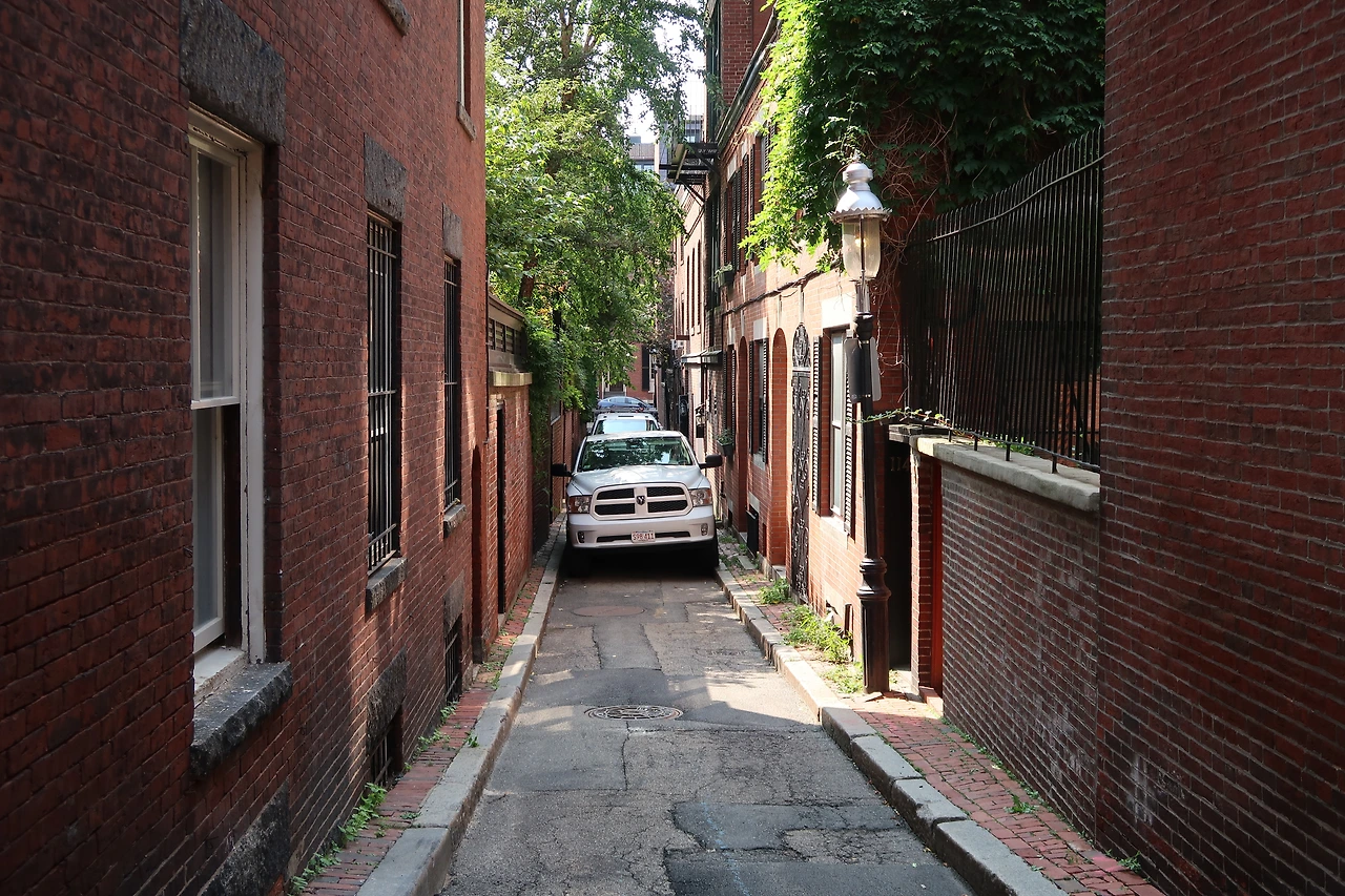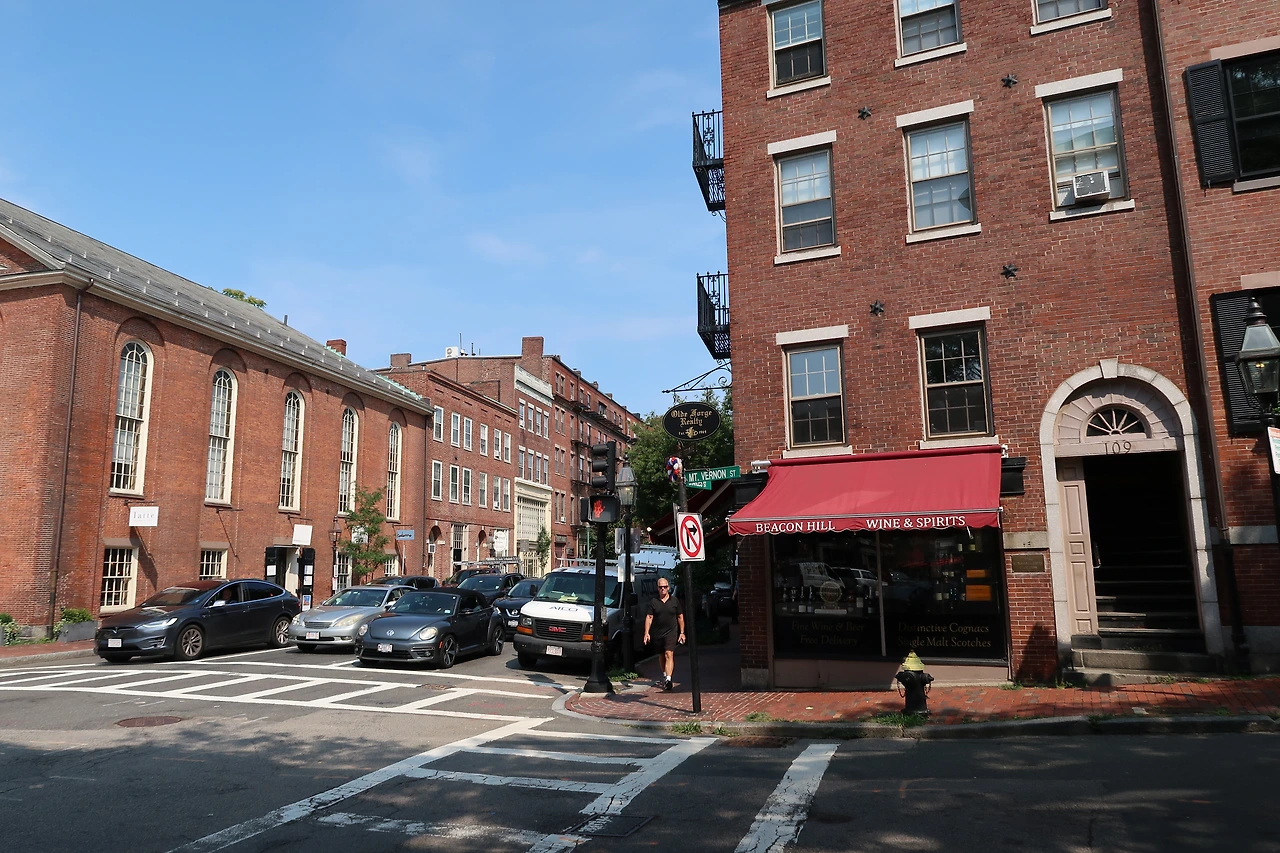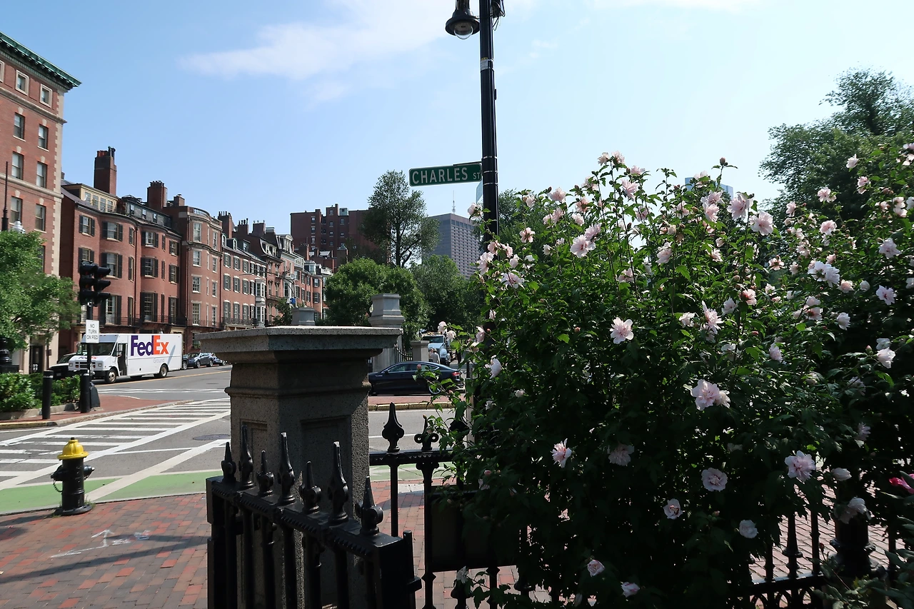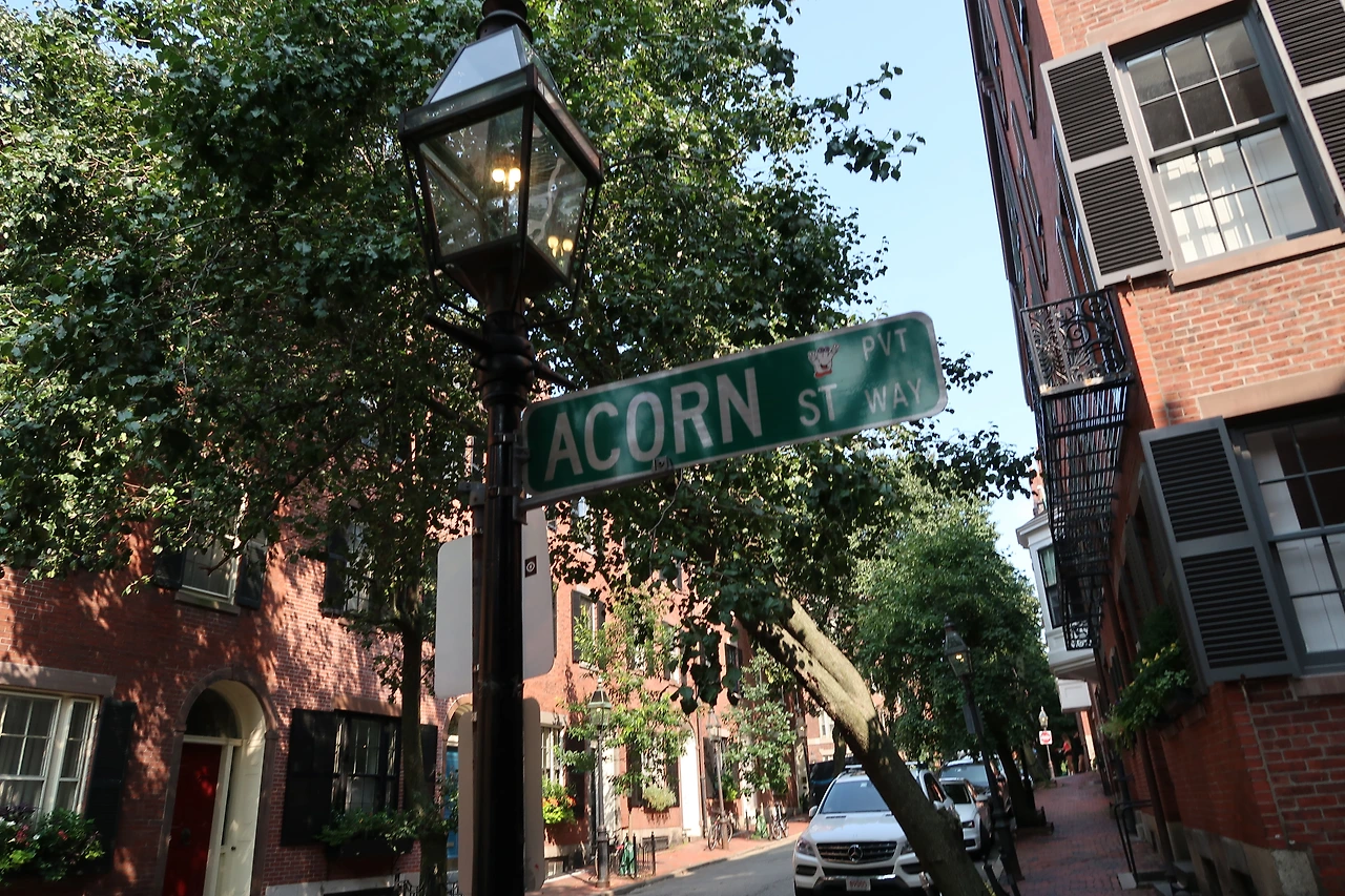 보스턴에서 가장 아름다운 지역으로 손꼽히는 비컨 힐에는 오래된 골동품 조명 아래로 연방 양식 건물과 빅토리아 양식의 벽돌 연립 주택이 가파른 거리를 따라 늘어서 있다.