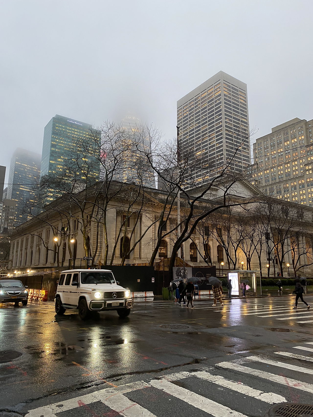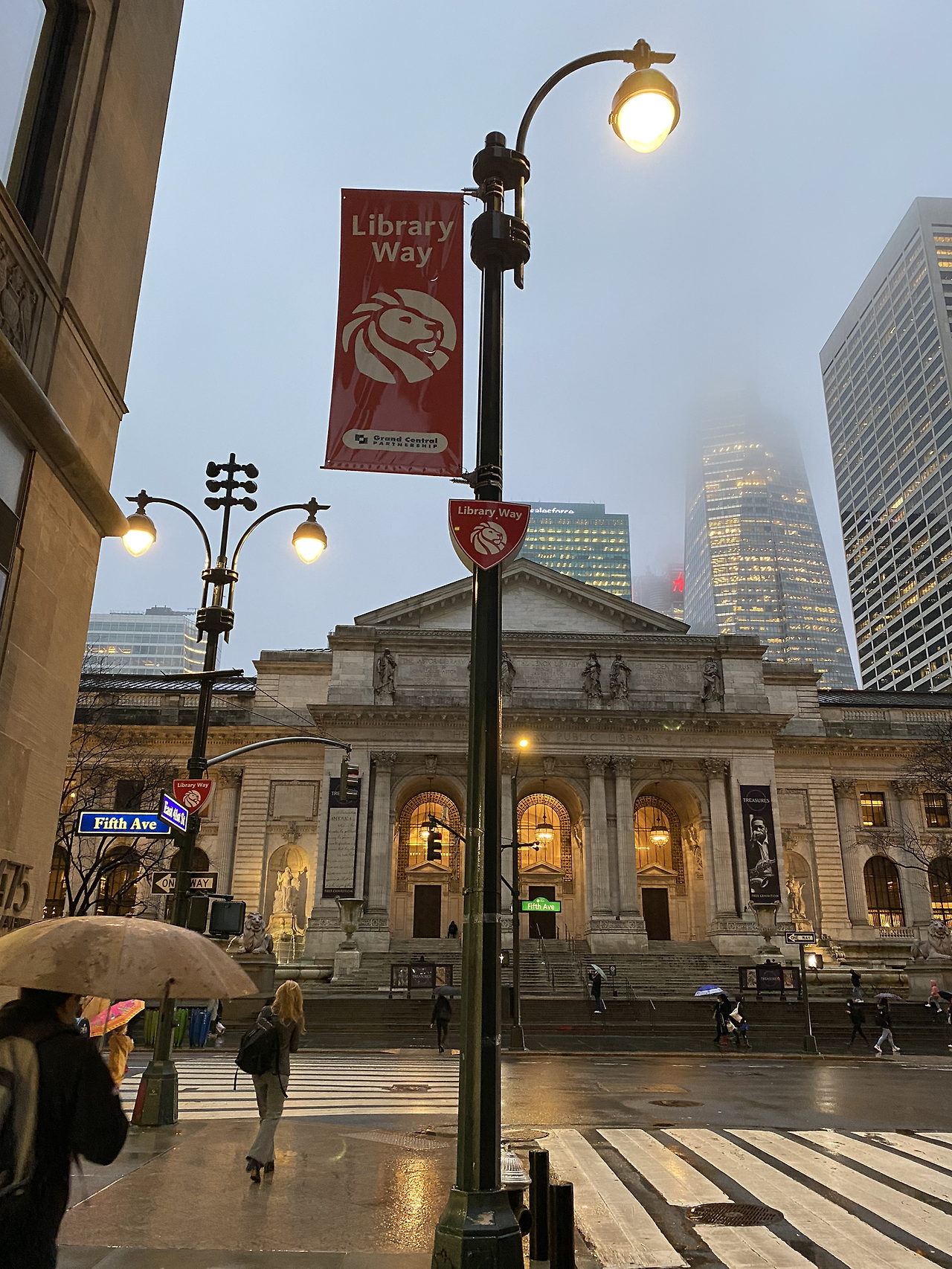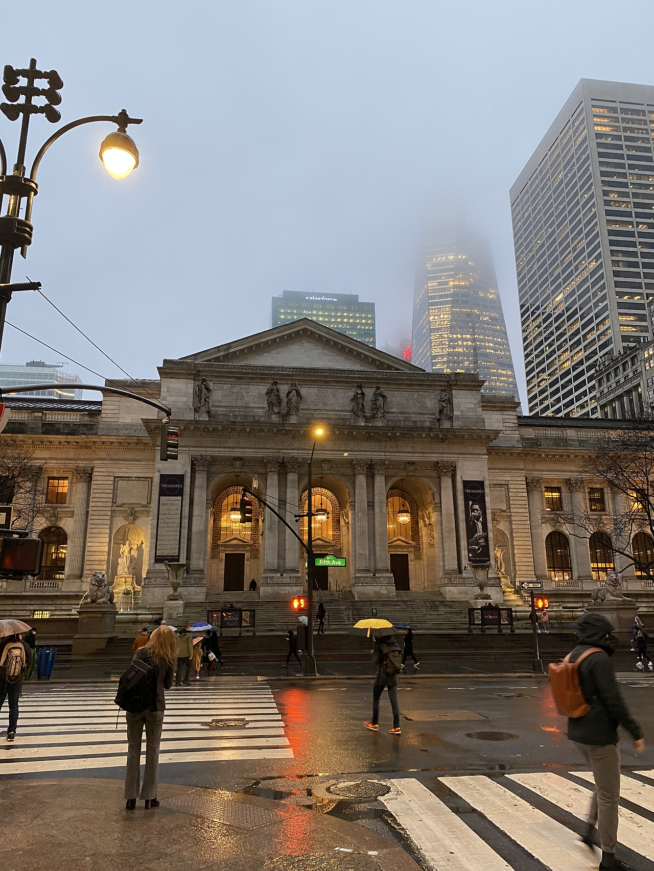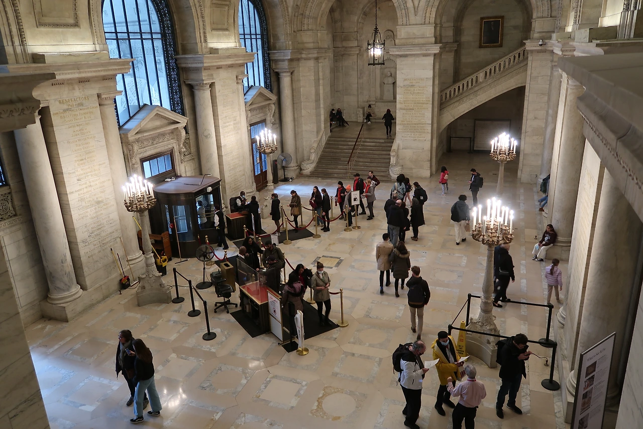 미국에서는 국회도서관에 이어 2번째로 많은 규모이고 세계에서는 4번째라고 한다. 1493년에 콜럼버스가 신대륙을 발견하는 것을 보고하는 편지와 조지 워싱턴의 사임 연설, 존 콜트레인의 ‘Lover Man’ 악보 등 귀중본을 소장하고 있어 박물관 같은 역할도 하고 있다. 맨해튼 42가에 위치한 본관 건물은 영화 고스트 버스터즈, 투모로우, 섹스 앤드 더 시티 등의 영화 촬영지로도 유명하다고 한다.