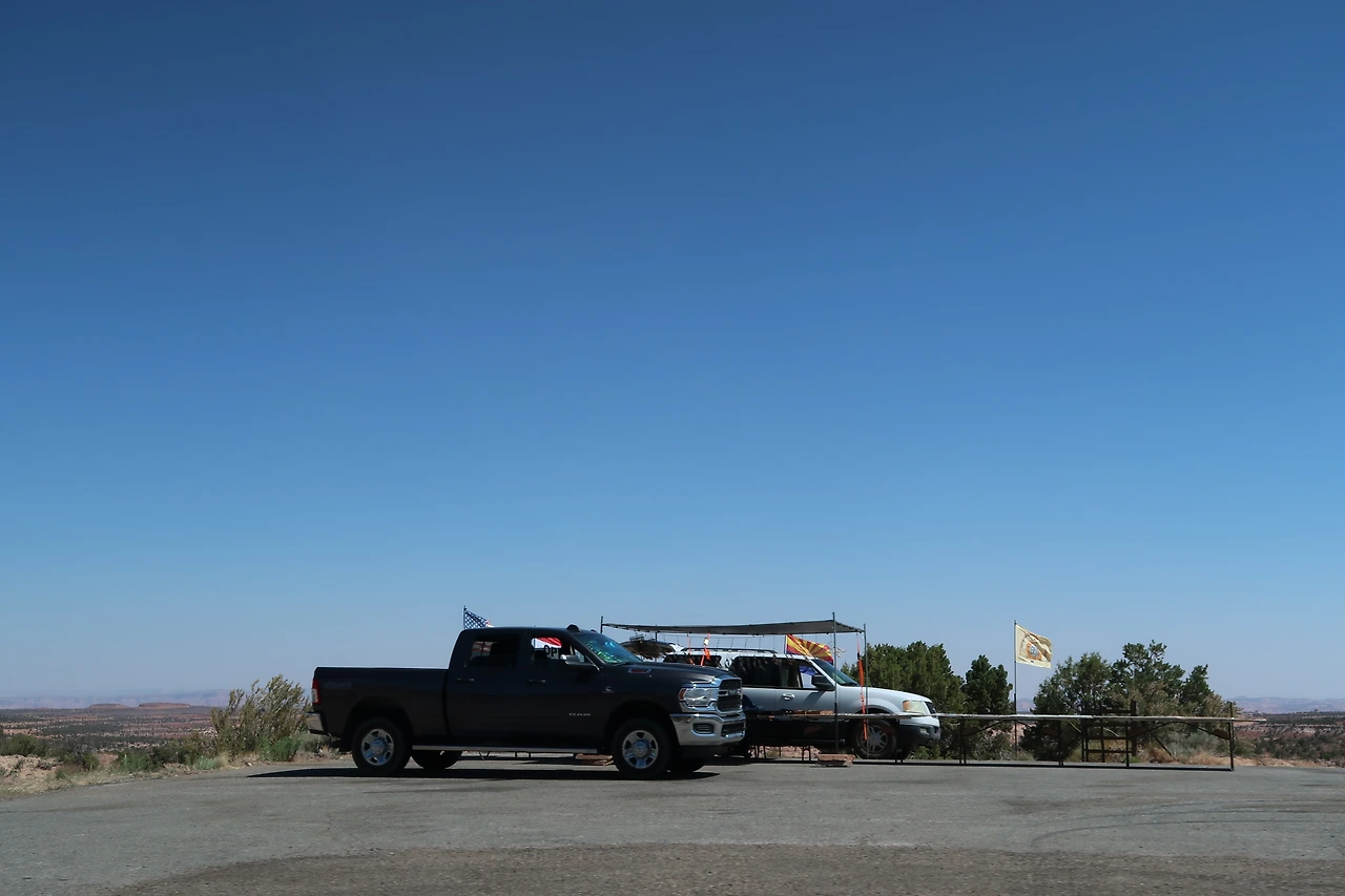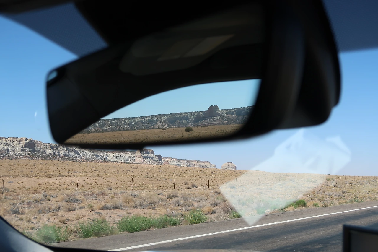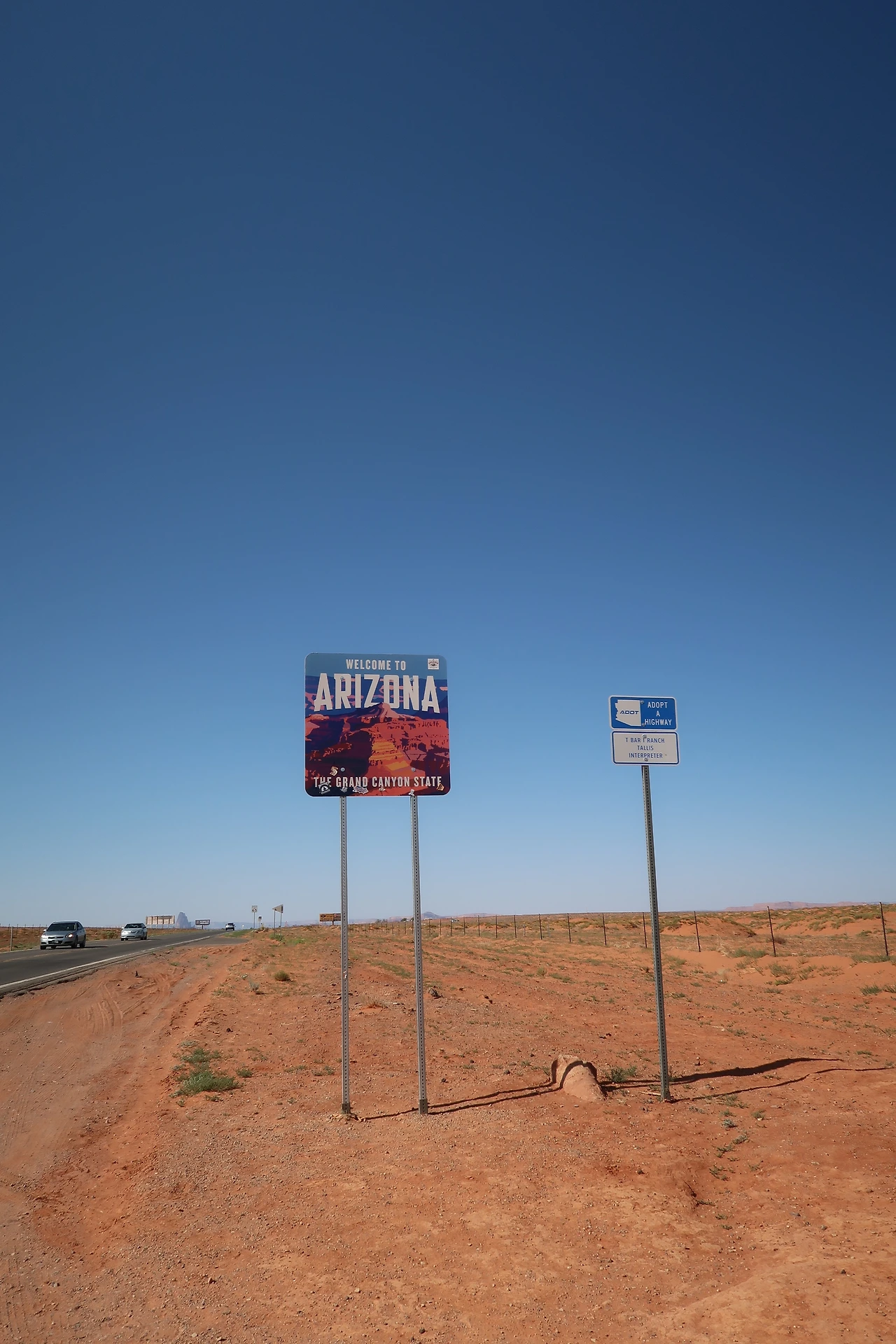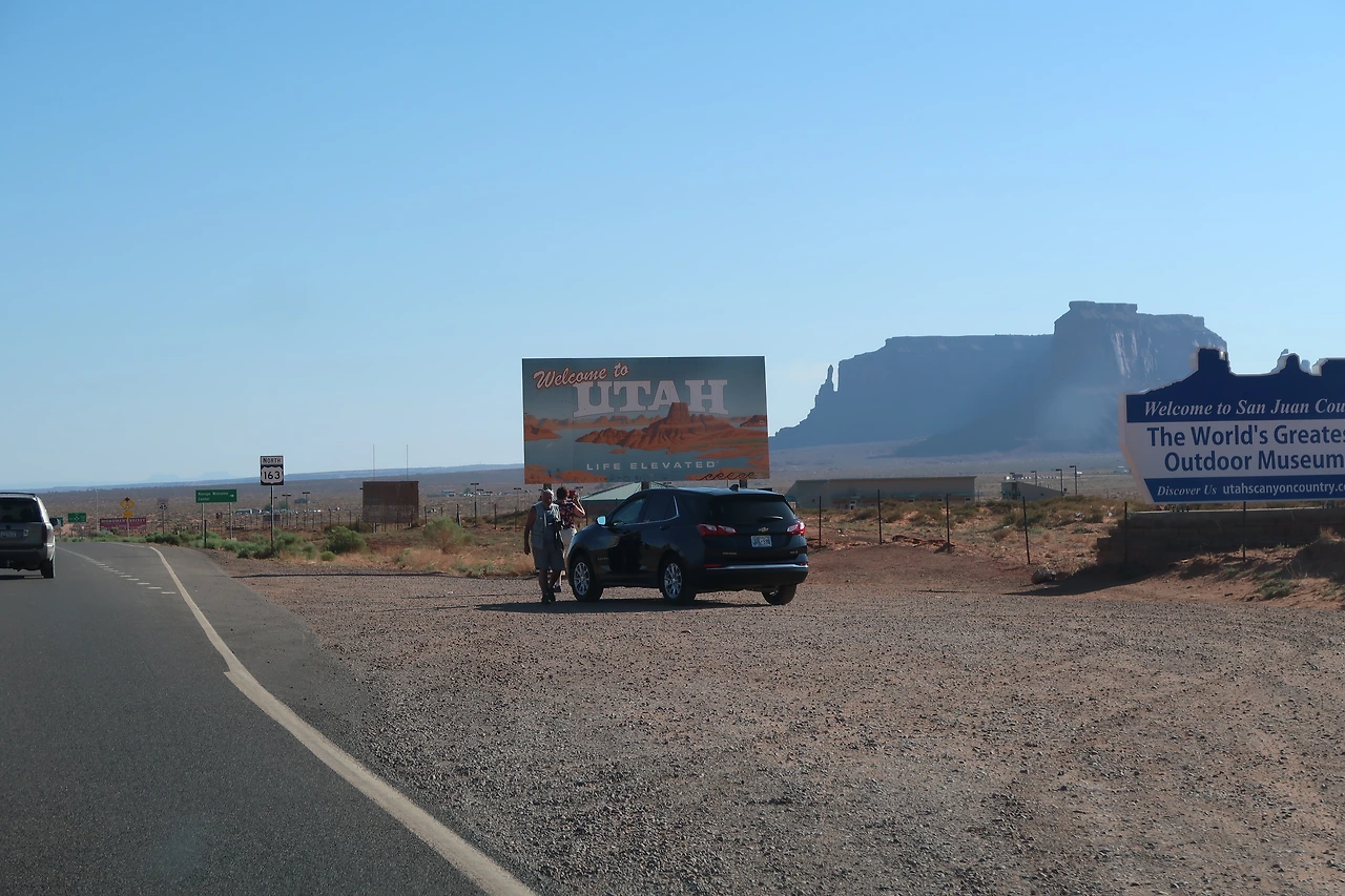 돌아오는 길에 유타주와 애리조나 주의 경계에 세워진 양쪽 팻말 앞에서 번갈아 기념사진도 찍었다.