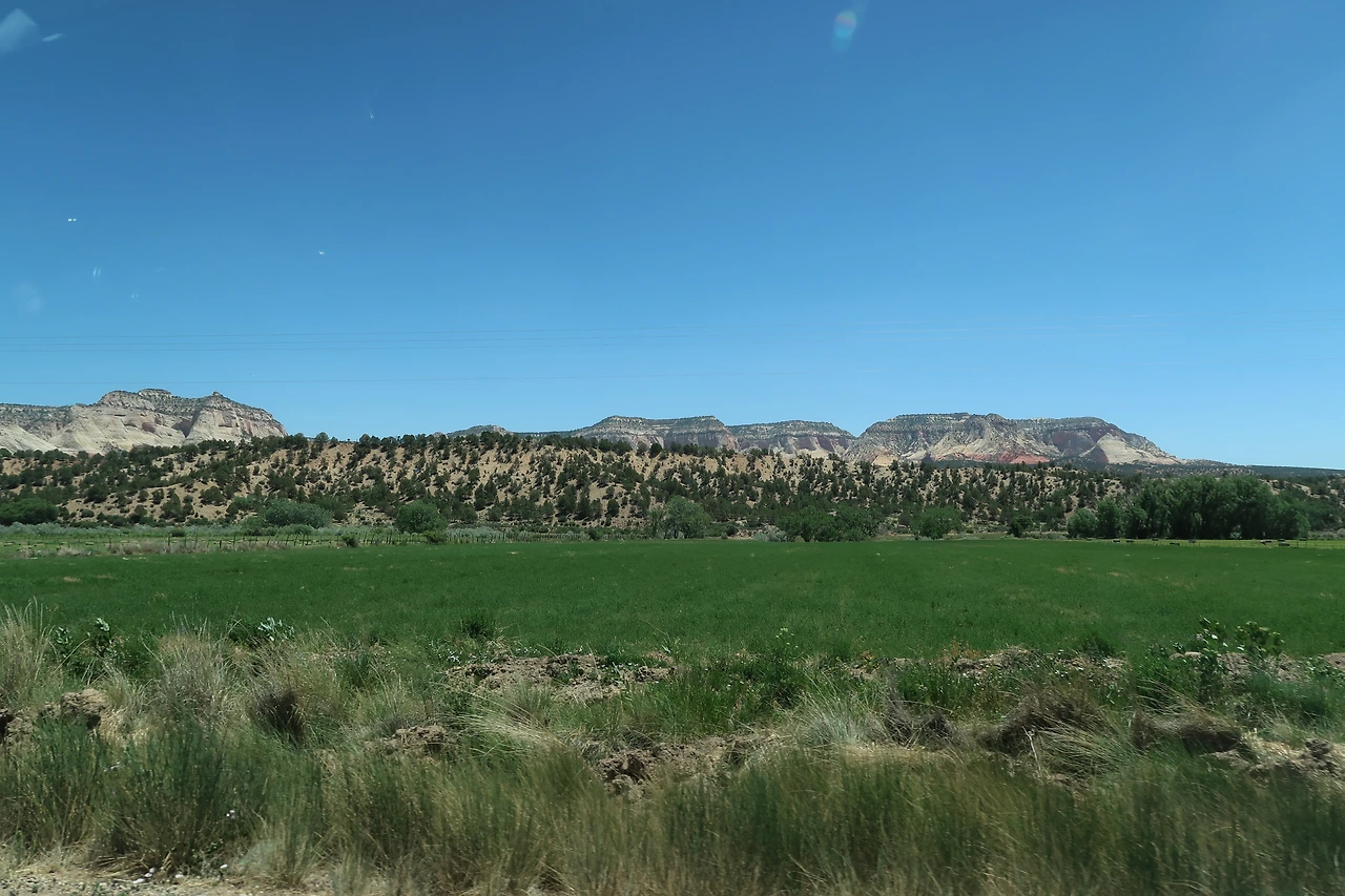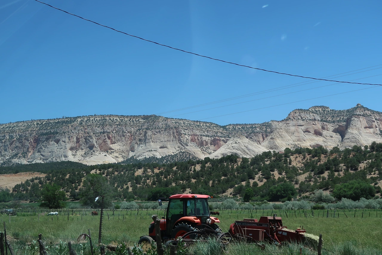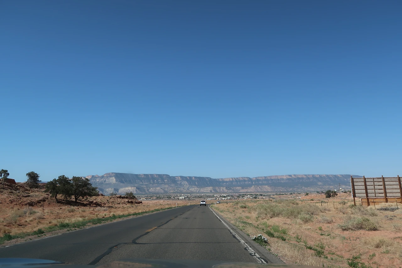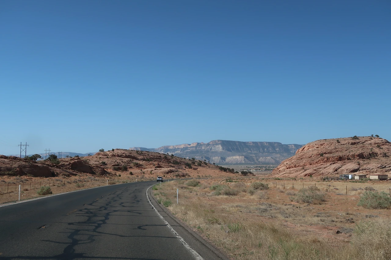 저 멀리는 오렌지빛의 민둥산. 브라이스 캐년에 가까워져 간다는 의미였다.