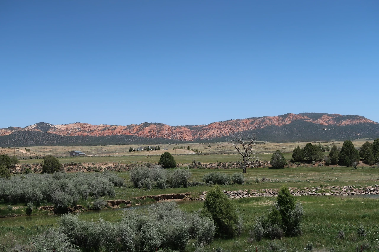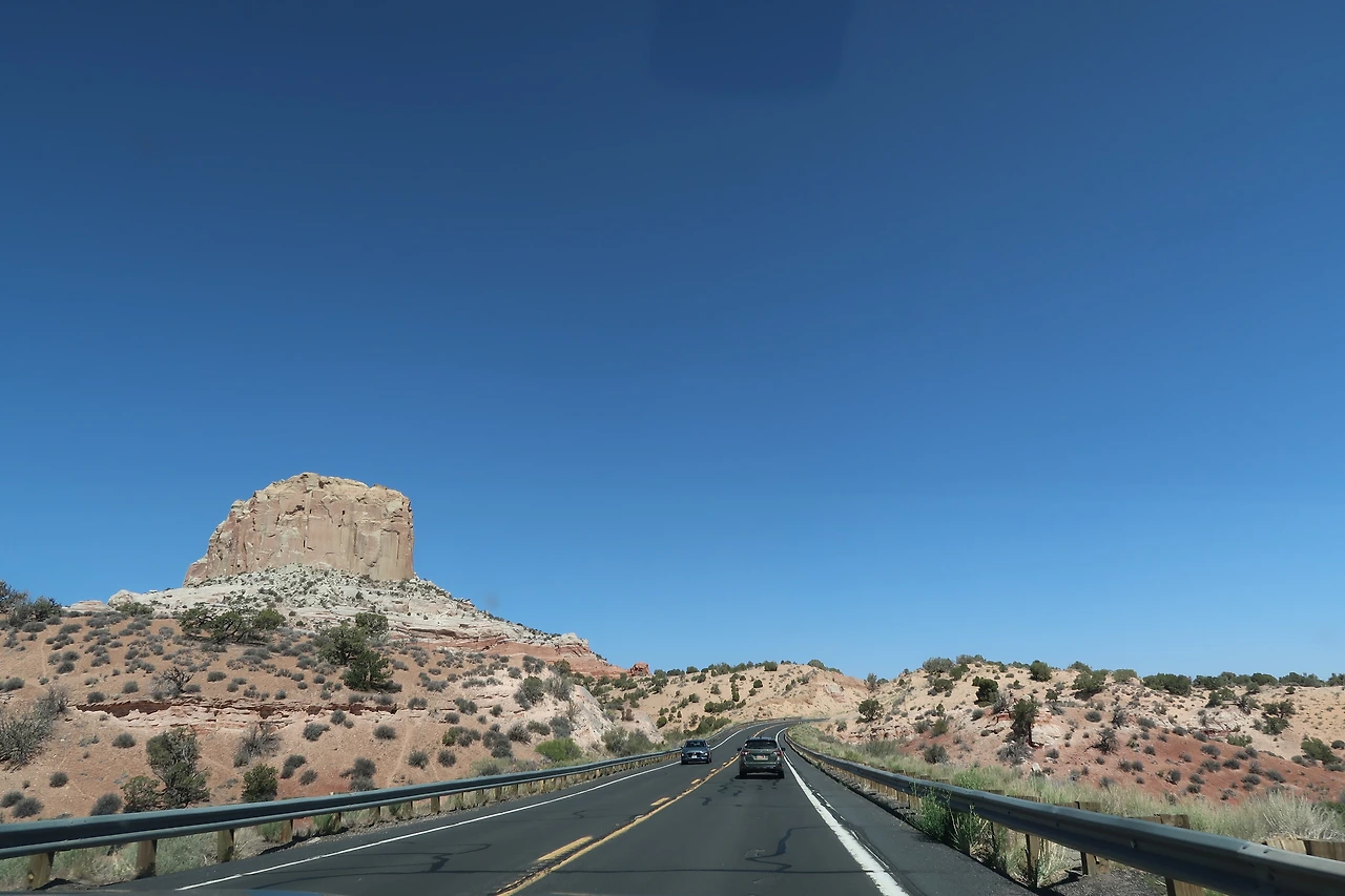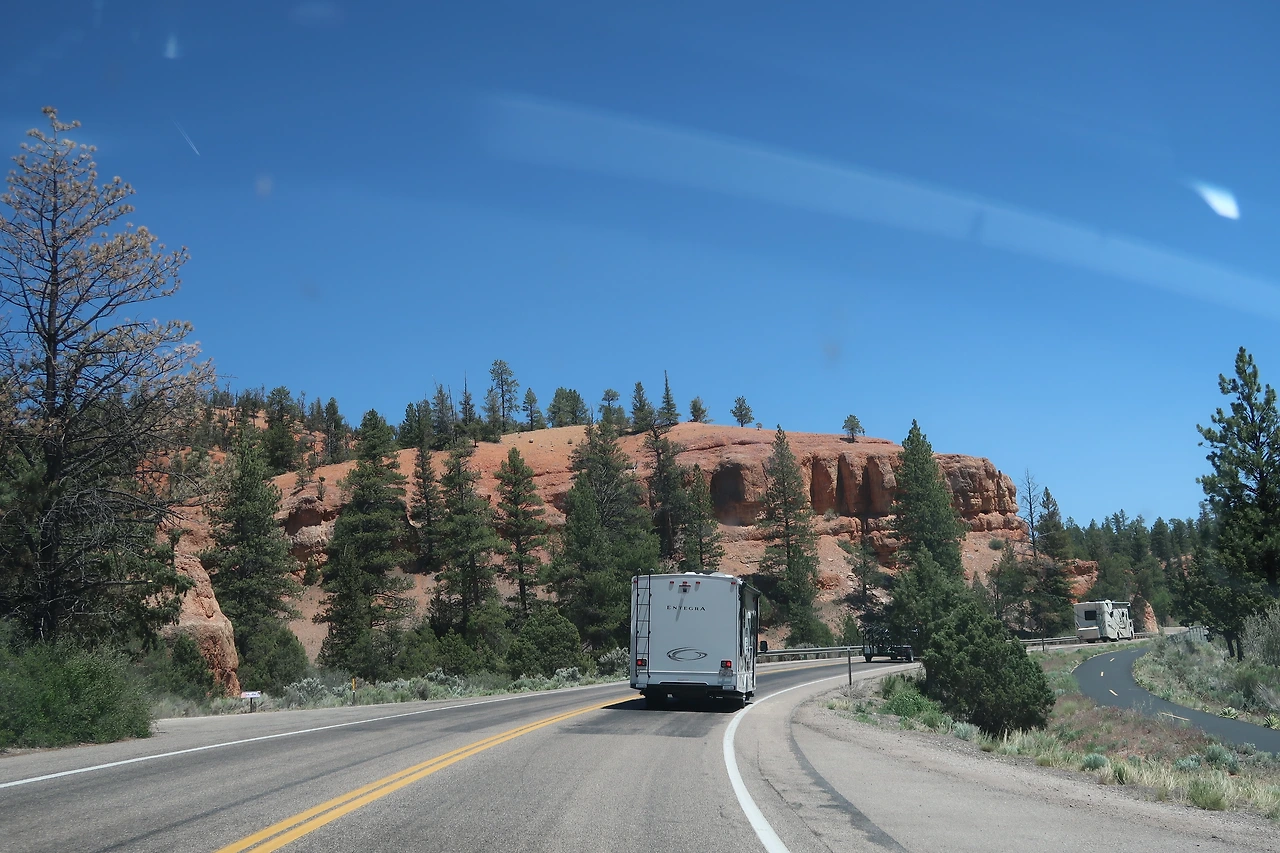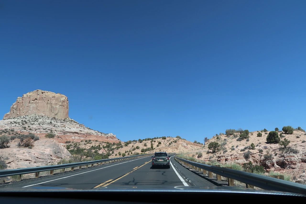 저 멀리는 오렌지빛의 민둥산. 브라이스 캐년에 가까워져 간다는 의미였다.