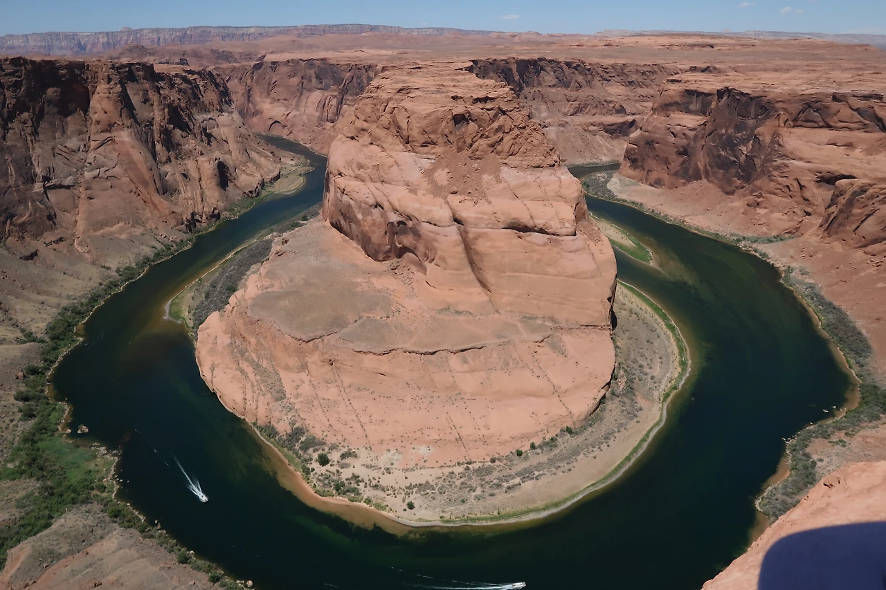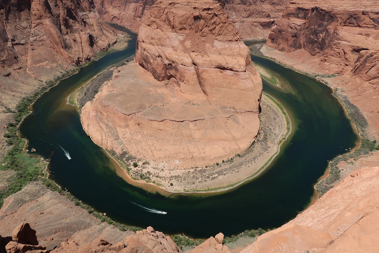 이곳은 미국 애리조나주 Page시 근처에 있는 말굽 협곡으로, 콜로라도강의 모양이 말굽처럼 생겼다 해서 붙여진 이름이다. 보트로 투어가 가능한지는 몰랐다. 물살을 가르는 그들이 시원해 보였다.