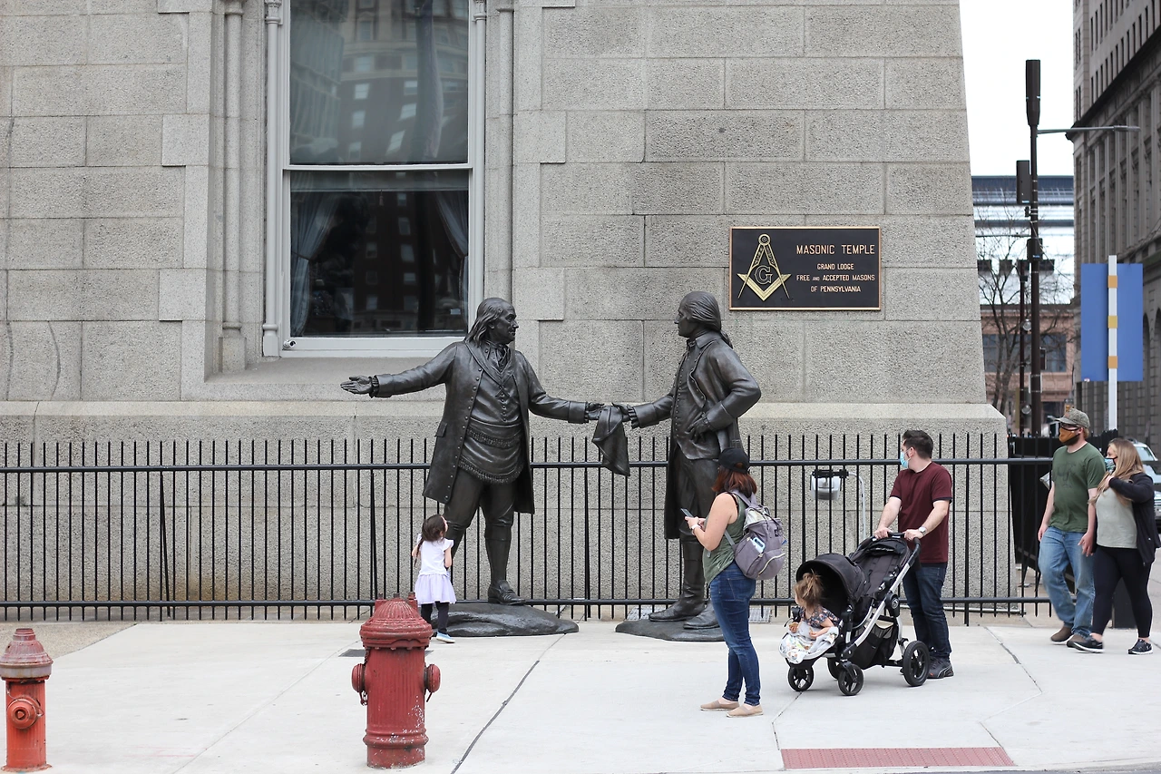 예술의 도시답게, Philadelphia Public Art도 곳곳에서 만날 수 있다. 조지 워싱턴과 벤자민 프랭클린이 손을 잡은 'The Bond'라는 작품이다.
