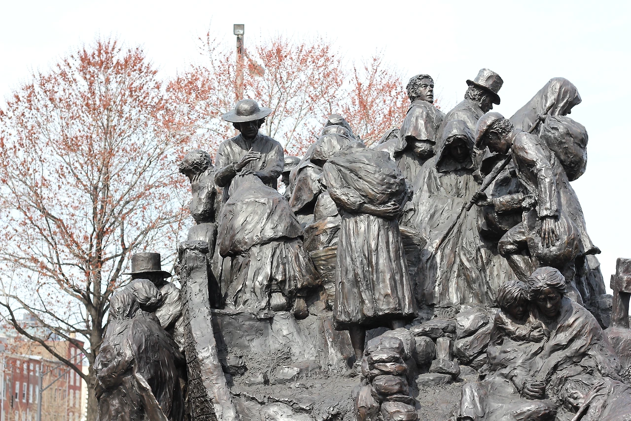 걷다 보니 만나게 된 아이리쉬 메모리얼. Chest St. 와 교차하는 곳에 있다. 엄청난 굶주림으로부터 벗어나고자, 목숨 걸고 바다 건너 온 이들이었다. 그렇게 기쁨과 지침이 교차하는 얼굴로 필라델피아 땅을 밟았다.
