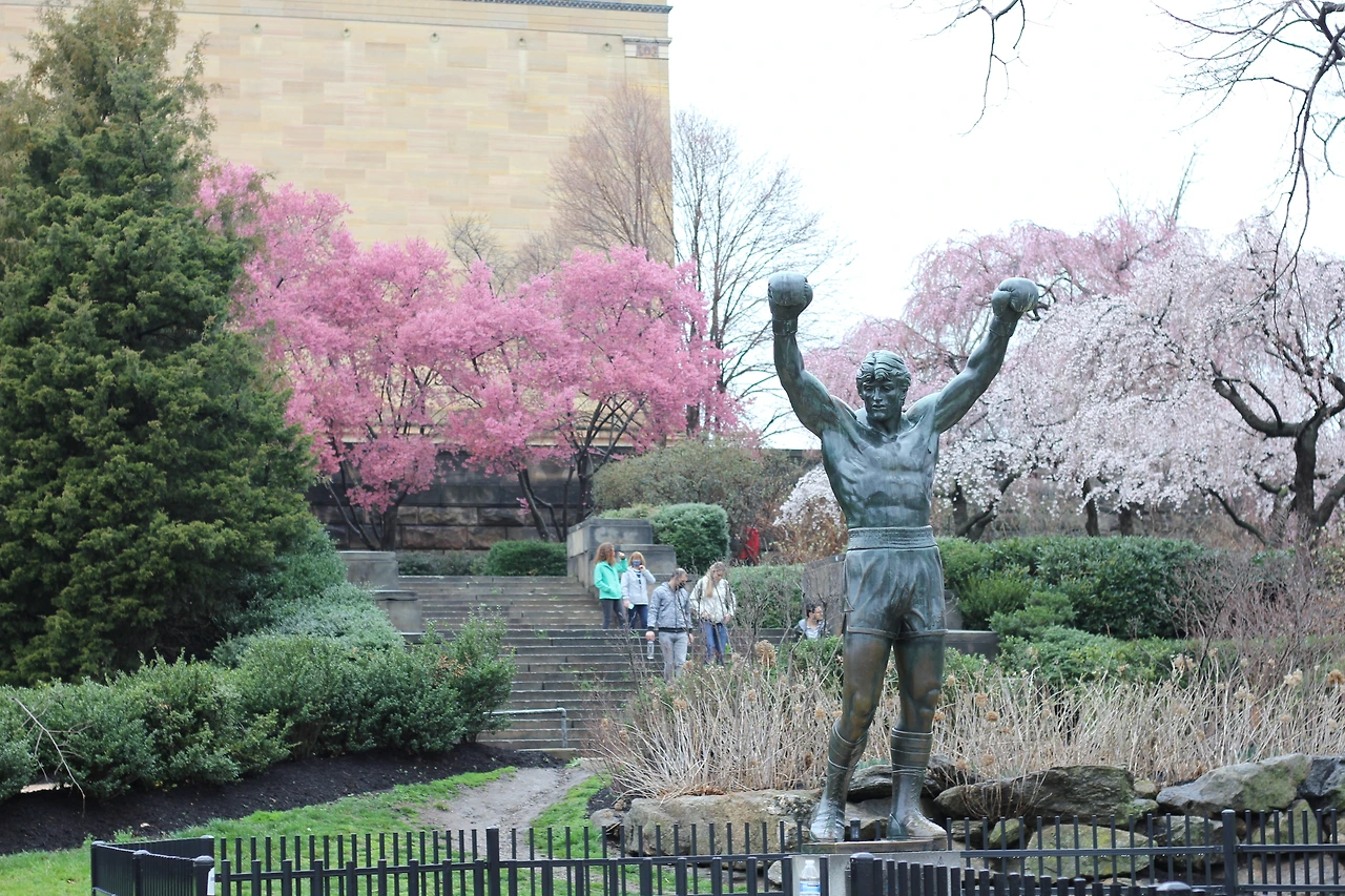영화 록키의 주인공 동상이 필라델피아 미술관 앞에 세워져 있다. 관광명소에서 사진 찍어주겠다는 사람을 조심해야 한단 이야기를 익히 들어 알고 있었는데, 여기서 딱 마주쳤다. 깔끔하게 노땡큐 하니 더 질척이진 않았지만, 감도는 무거운 공기는 감내해야 했다.