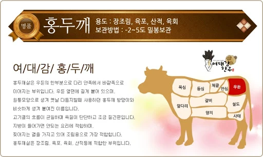 소고기는 좋은 단백질 공급원인데요. 그 중에서도 단백질 함유량이 가장 높고 지방이 적은 부위인 우둔살과 홍두깨살은 닭가슴살을 대체할 아주 훌륭한 단백질원이라고 합니다. 우둔살은 말 그대로 소의 엉덩이쪽 살이라고 하는데요. 보통 육회나 불고기를 많이 해 먹지만 그냥 구워서 먹어도 식감은 질기지만 꽤 먹을만 하다고 합니다. 특히 가격이 비교적 저렴한 것이 특징이니 참고하시면 좋겠습니다