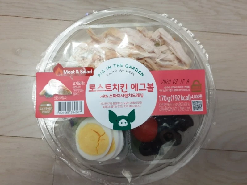 로스트 치킨 에그 볼은 내용량 170g에 192칼로리로 용량 대비 칼로리가 크지 않아서 우선 다이어트하시는 분들에게도 무리가 없는 샐러드 제품입니다. 로스트 치킨 에그 볼의 구성을 살펴보면 크게 구운 치킨, 양상추, 계란, 양배추, 방울토마토 등으로 이루어져 있는데요.