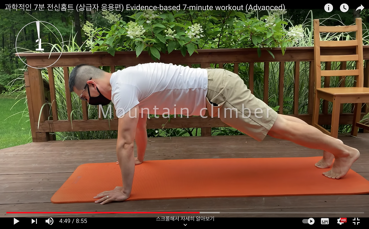 개인적인 추천으로는 “미국대학 박교수” 유튜브 채널에 들어가시면 미국 스포츠의학회가 인증한 7분짜리 체중관리와 근성장을 위한 운동을 녹화해 두셨으니 참고해 보시면 좋겠습니다. 체력이 되시는 분들은 7분짜리 프로그램을 한 번만 반복하시는 것이 아니라 5세트, 10세트 등 할수 있는 만큼 진행해 보고 세트수를 늘려나가는 것도 점진적인 운동수행능력을 기르고 내장지방을 제거해 주는 데 도움이 될 것입니다.