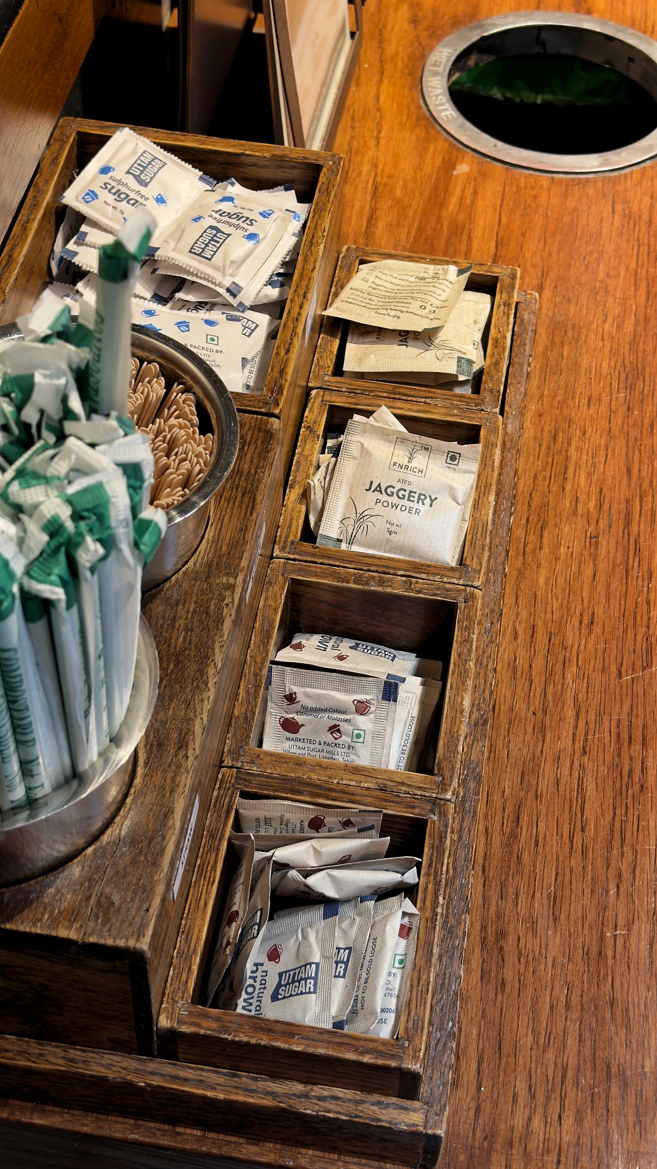 어디에나 달콤한 음료와 디저트들이 있어서 그런지 백설탕, 황설탕, 비정제 설탕인 재거리가 컨디바에 구비되어 있다. 그런데 이것저것 마셔보면 아예 노 슈가로 나온 음료가 아니라면 기본적으로 달아서 설탕을 추가할 필요가 없다.