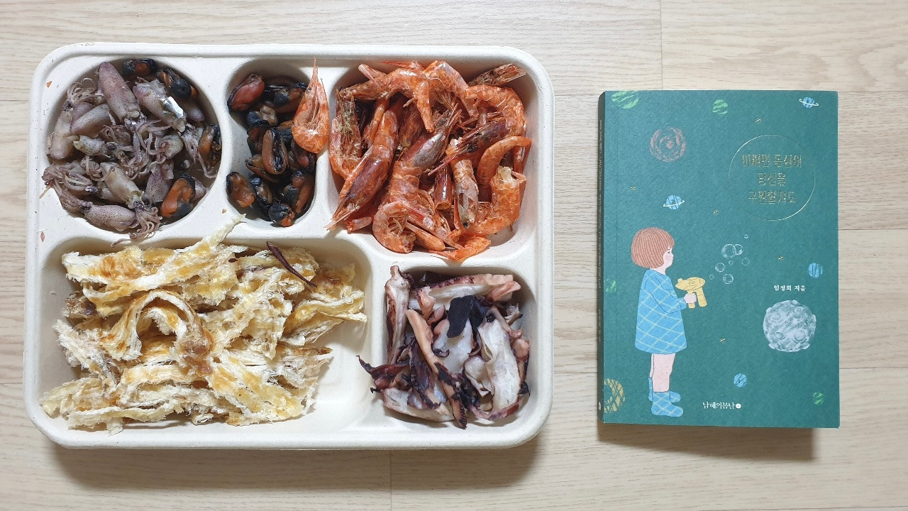 마른 건어물에 맥주 한 잔을 기울이며 책을 펼쳤다.