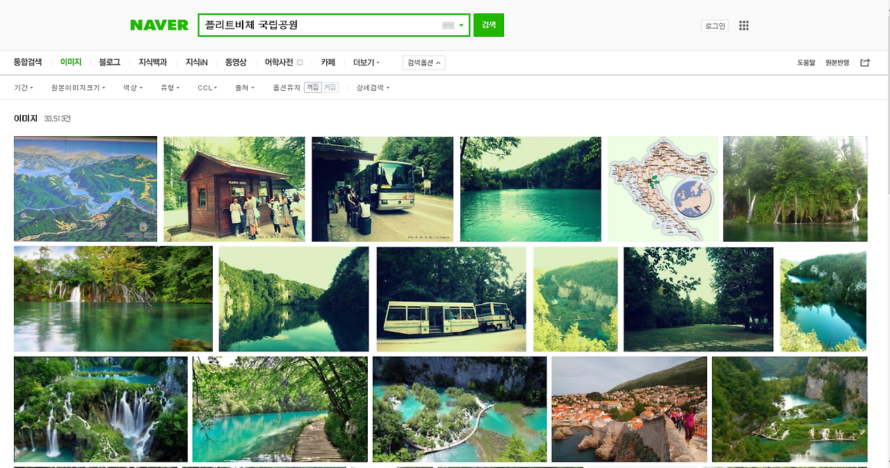 그래서 집에 돌아오자마자 컴퓨터를 켜고 모니터 앞에 앉았다. 커서가 깜박거리는 네이버 검색창에 'ㅍ', 'ㅡ', 'ㄹ'... 자음과 모음을 합쳐 글자를 만들었다. '플리트비체 국립공원'이라 쓰고 검색 버튼을 클릭한 후, 마지막으로 '통합검색' 옆의 '이미지' 탭을 누르자 화면이 온통 청록색으로 바뀌었다.