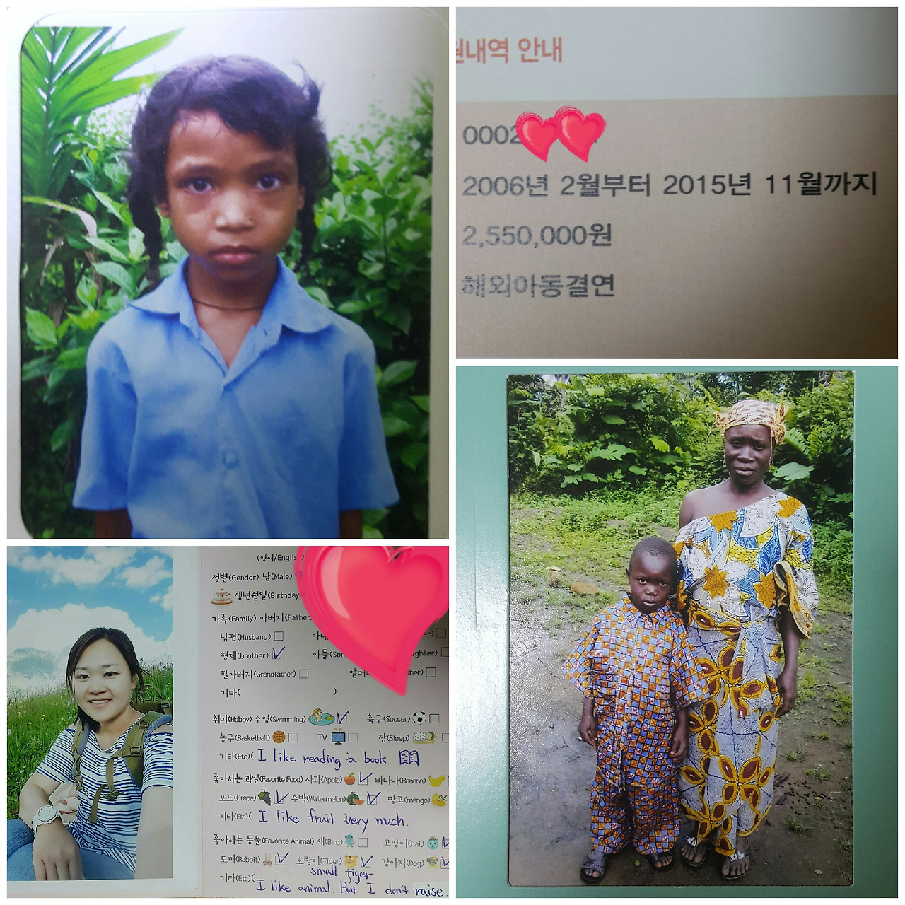“이모, 이모가 500만원을 나한테 줬던 때부터 해외 아동 후원을 시작했어. 그게 벌써 10년이나 되었더라. 얼마 전에 아이가 시집을 가게 되었다며 지금까지 후원내역을 보내줬는데, ‘2,550,000원’이었어. 나는 항상 그 아이를 이모가 도와주는 거라고 생각했어. 500만원까지는 이모가 도와주는 거라고 생각하면서 얼마 전에 또 해외 아동 결연을 신청했는데, 이번에는 아프리카 기니에 있는 남자 아이야.”